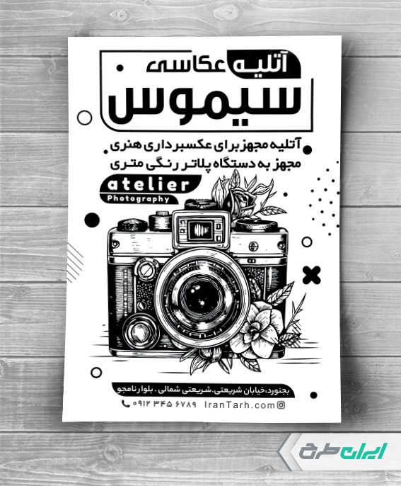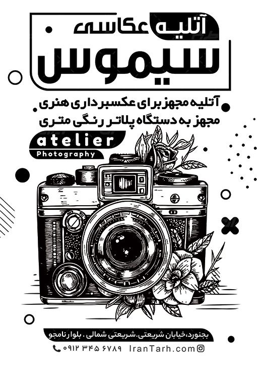 تیم ایران طرح طرح تراکت سیاه و سفید آتلیه عکاسی را برای بازاریابی و تبلیغات گسترده تر این فروشگاه ها طراحی و در دسترس کاربران سایت قرار داده است.