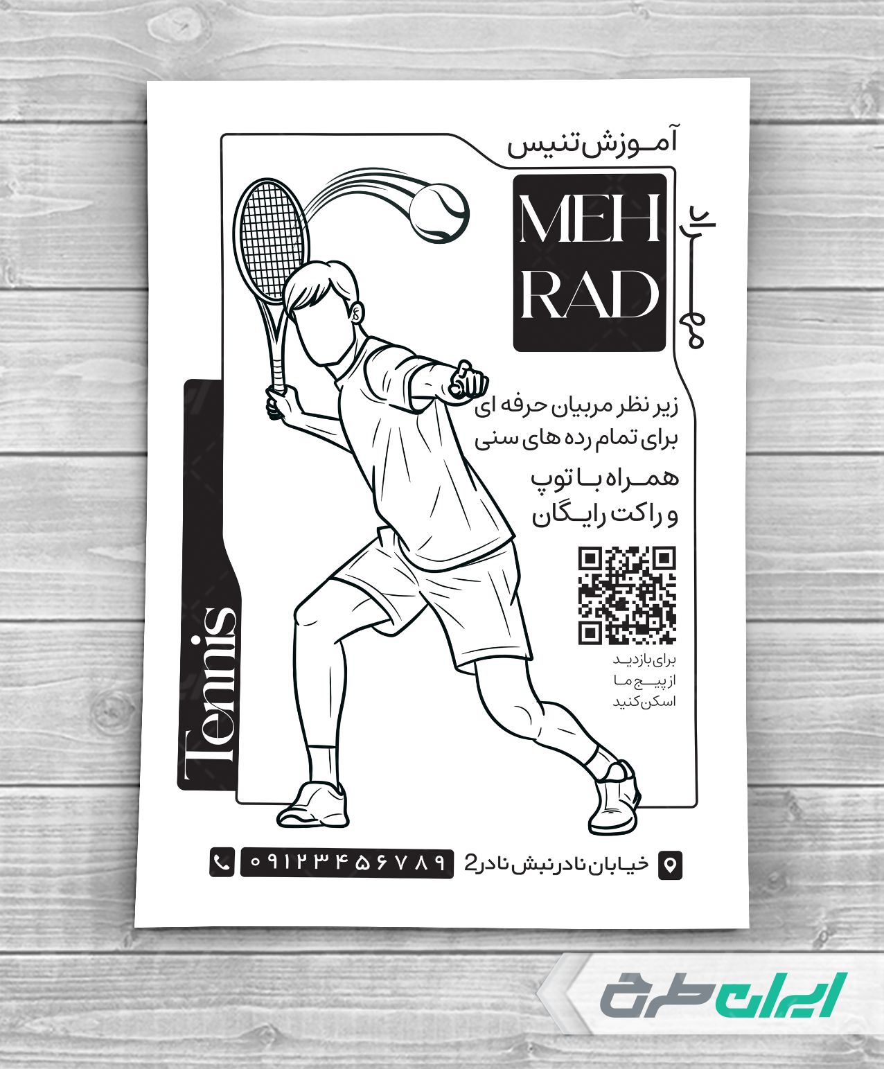 طرح تراکت لایه باز باشگاه تنیس، جهت بازاریابی و تبلیغات این کلاس ها توسط ایران طرح طراحی و در اختیار کاربران سایت قرار گرفته است.