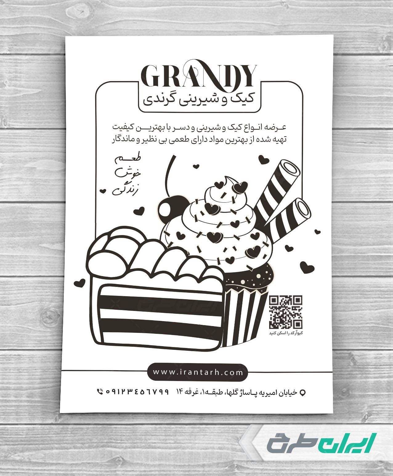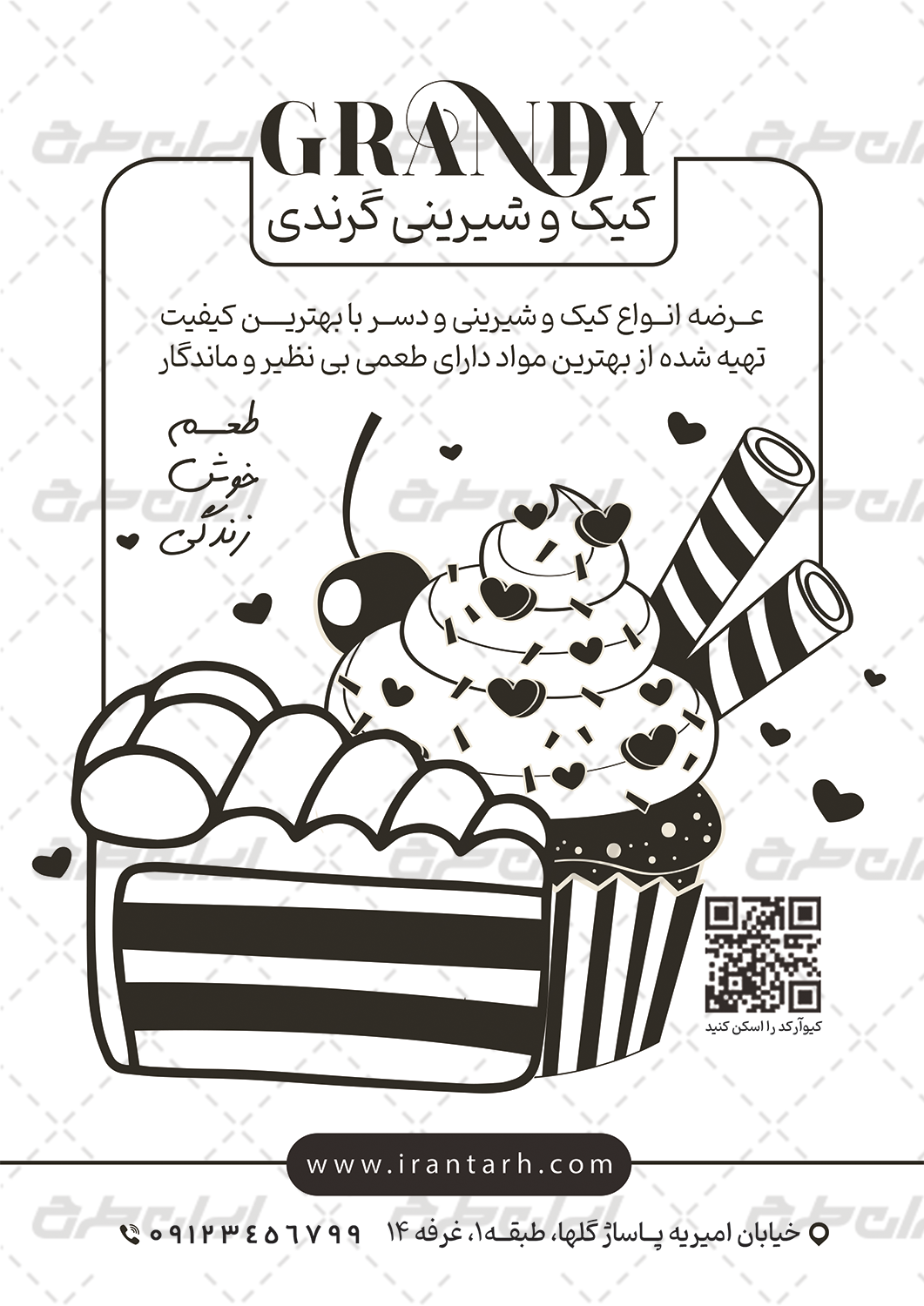 عناصر طرح تراکت سیاه و سفید قنادی