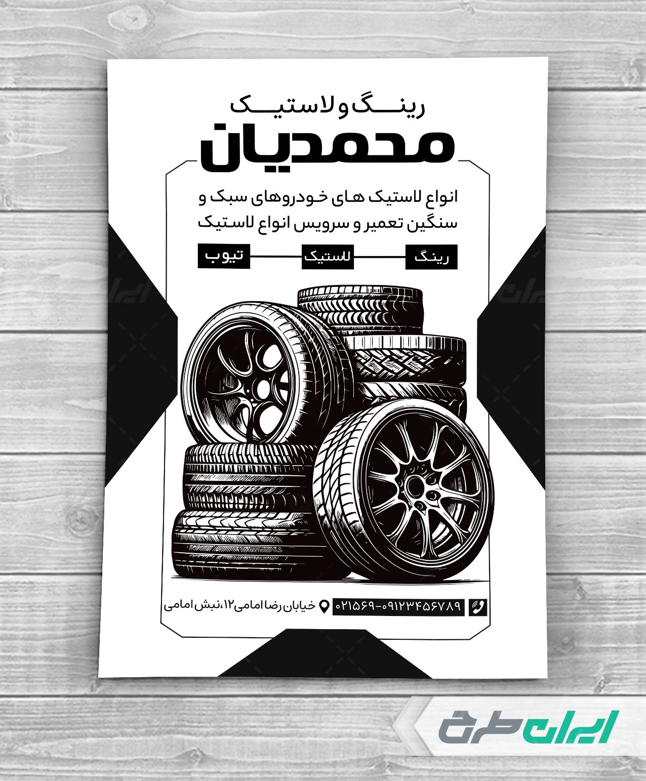 طرح تراکت ریسو فروشگاه رینگ و لاستیک
