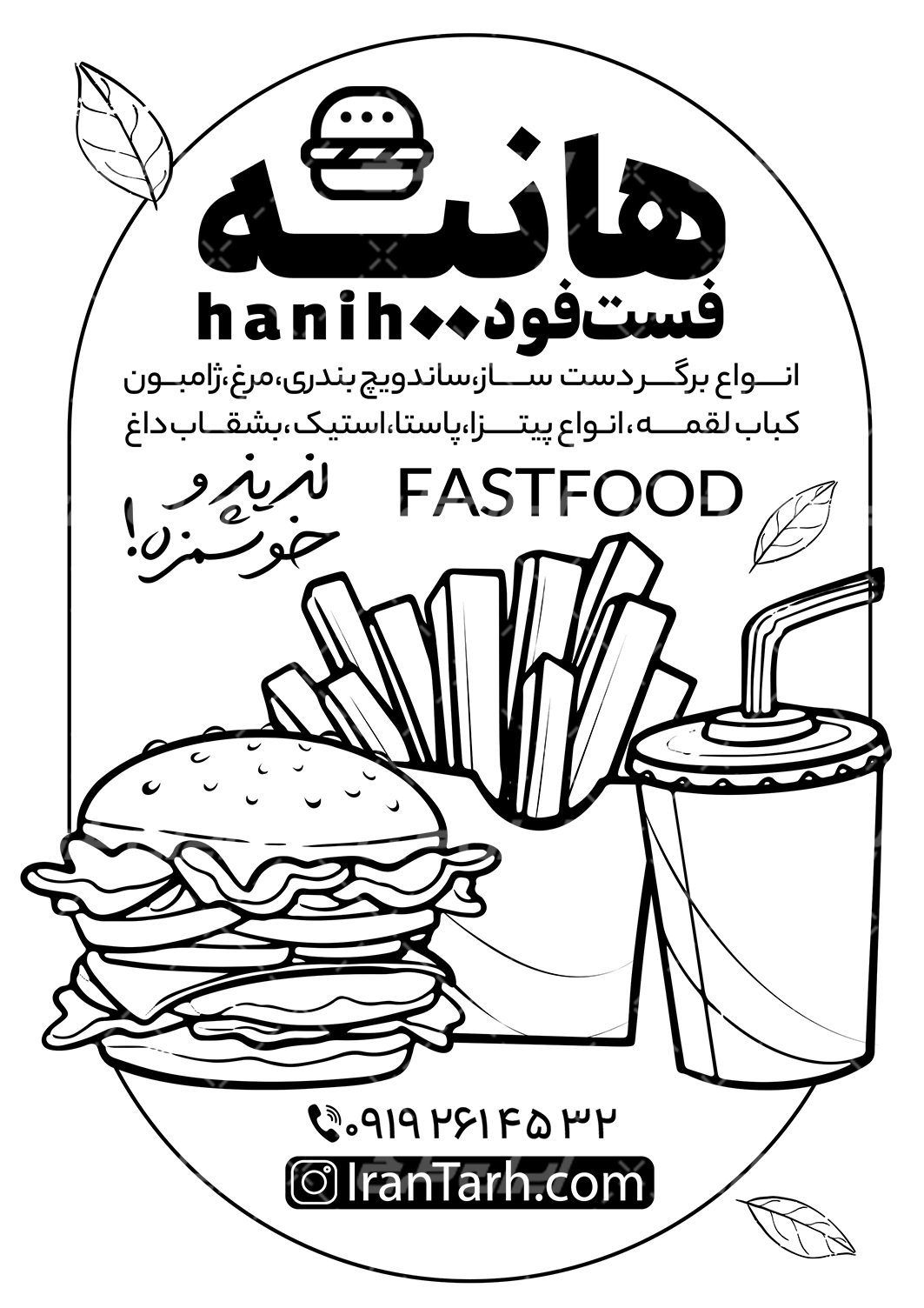 طرح تراکت سیاه و سفید اغذیه توسط تیم حرفه ای ایران طرح طراحی و در دسترس کاربران سایت قرار گرفته است.