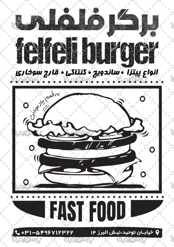 تراکت سیاه و سفید فست فود , تراکت تکرنگ فست فود , ساندویچی , طرح لایه باز , تراکت فست فود , دانلود تراکت فست فود , تراکت ریسو ساندویچی , تراکت ریسو , تراکت سیاه سفید , تراکت لایه باز , تراکت ریسو فست فود , چاپ ریسو ,