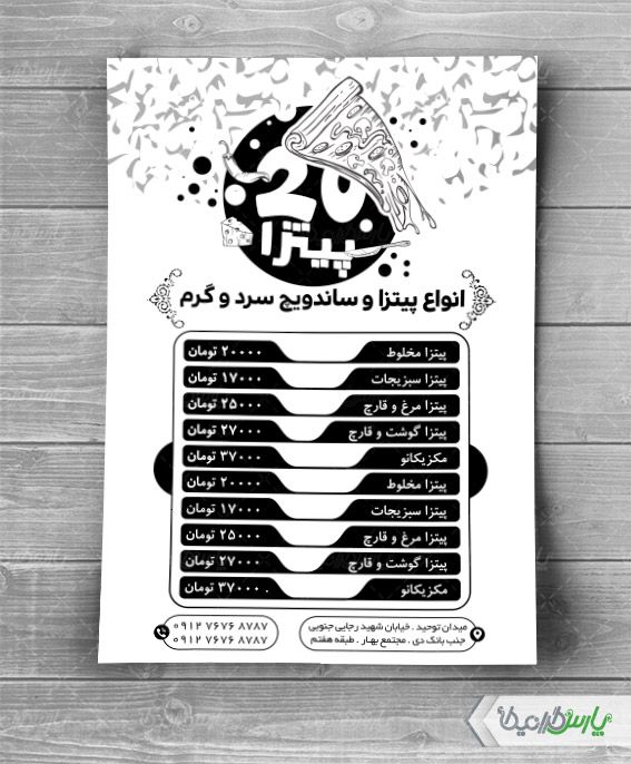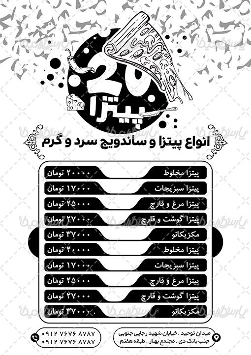 در این طرح از وکتور تکرنگ پیتزا و منوی پیتزا فروشی استفاده شده است.
