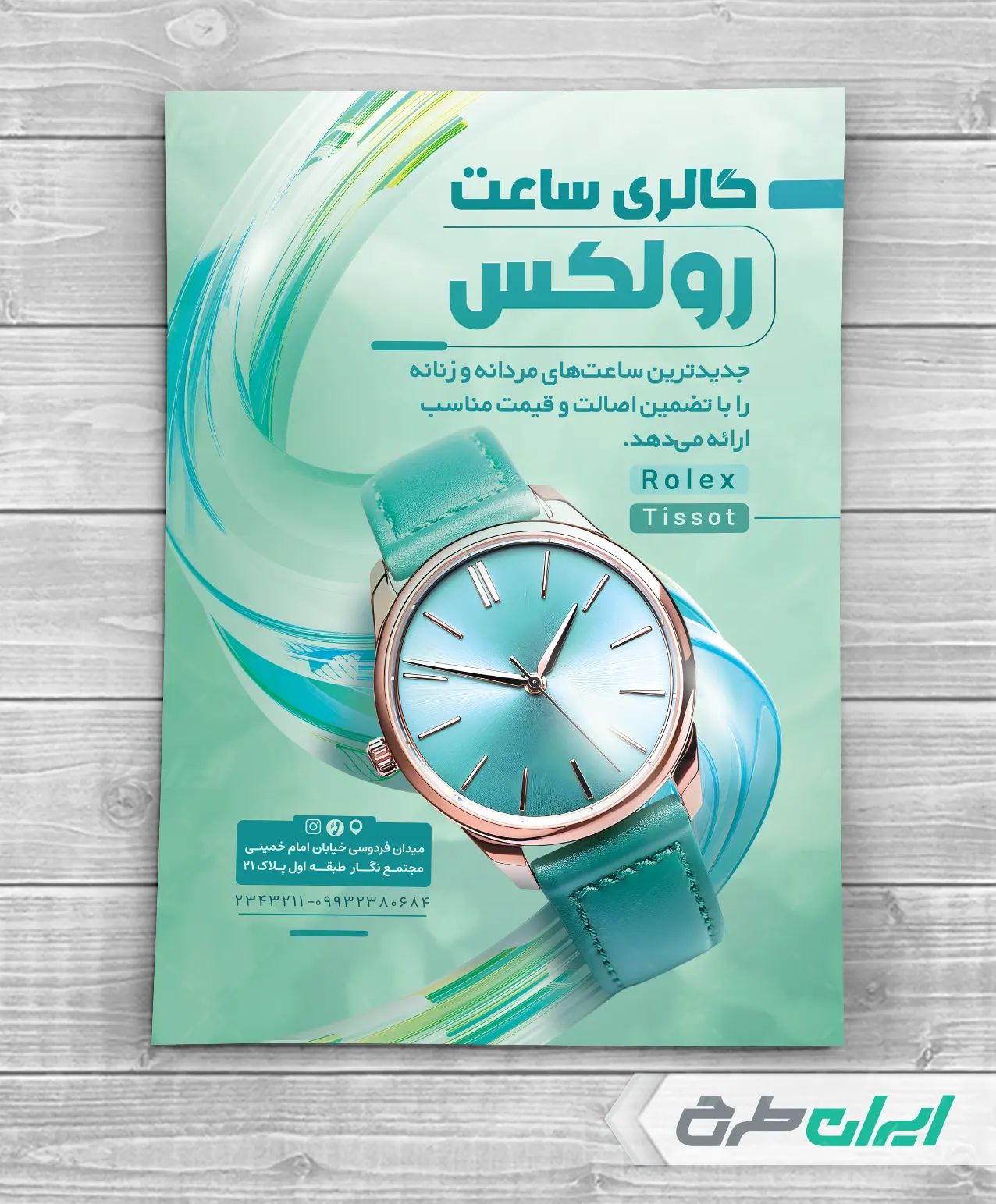 - طراحی ساده و شیک طرح تراکت ساعت فروشی