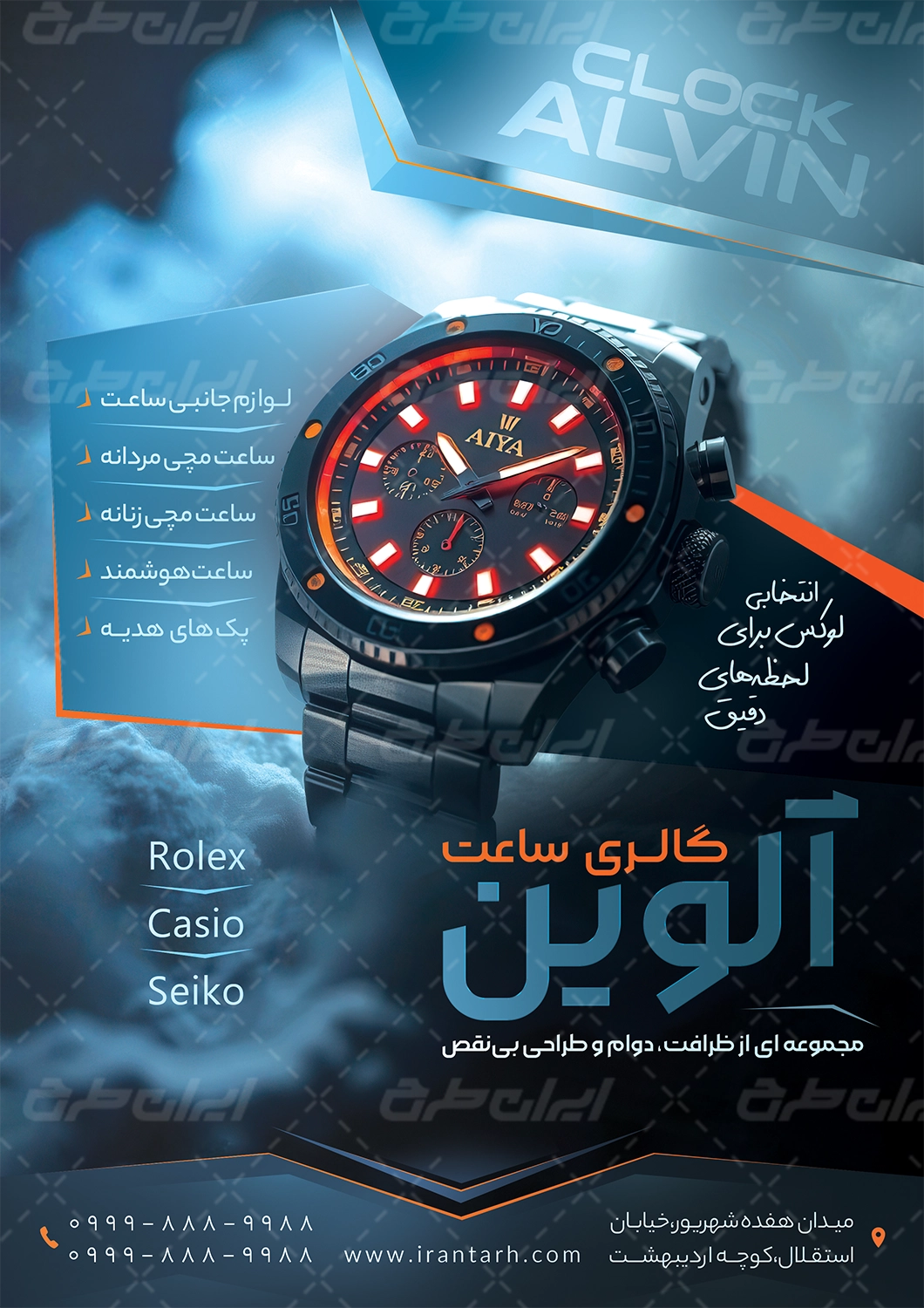 - طراحی ساده و شیک طرح تراکت ساعت فروشی