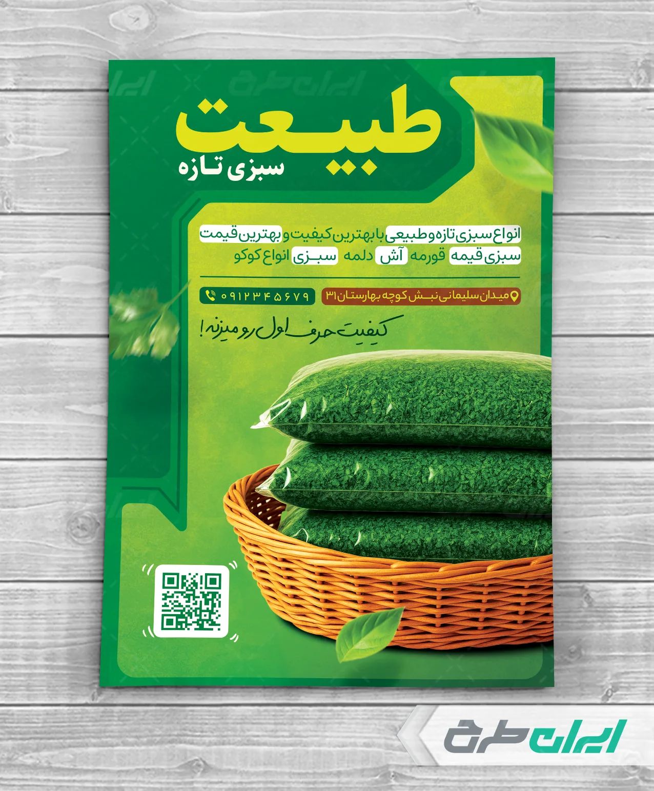 - استفاده از عکس باکیفیت سبزیجات در طرح تراکت سبزیجات آماده
