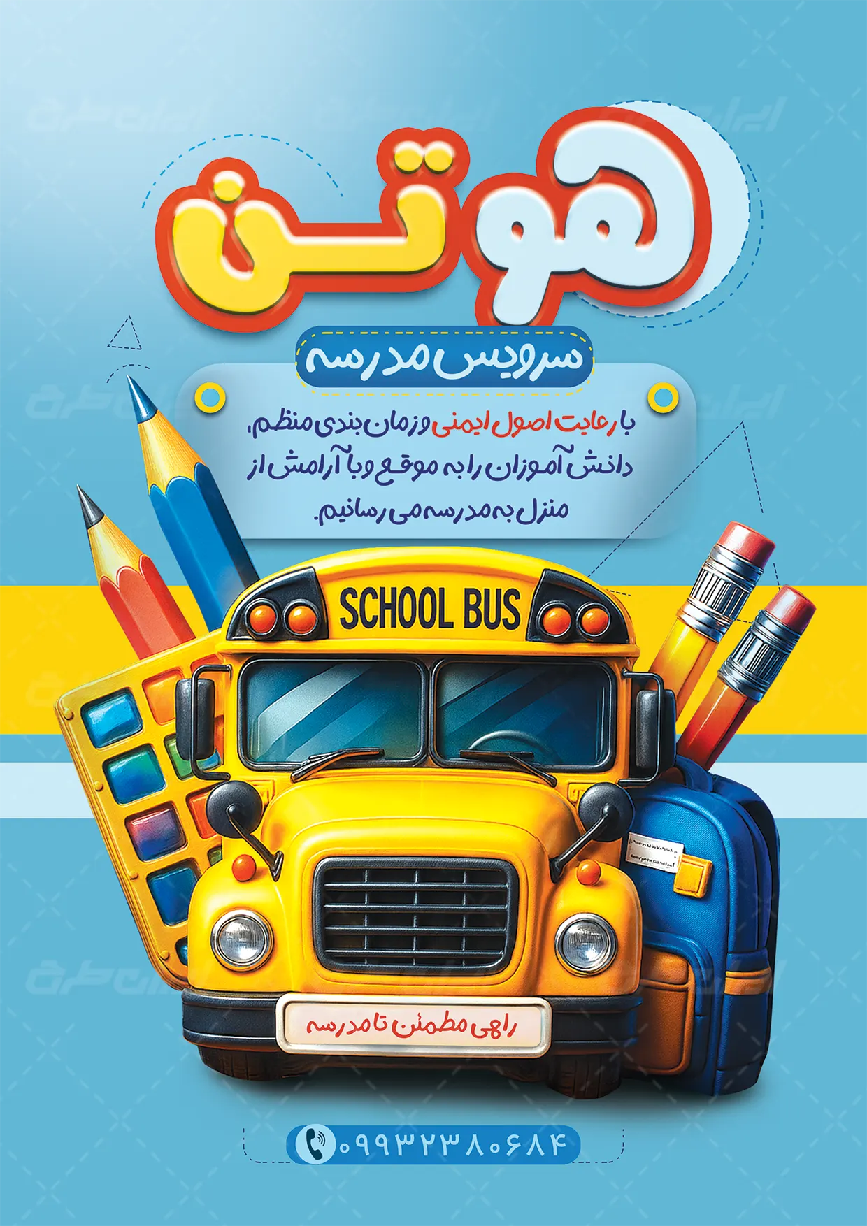 - استفاده از وکتور سرویس مدارس که مناسب با طرح تراکت لایه باز آژانس تلفنی