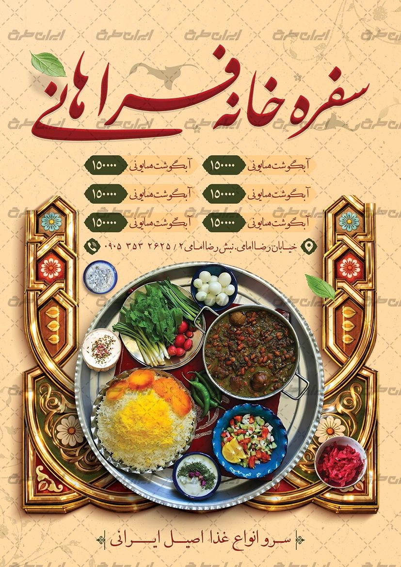 نکات طرح لایه باز تراکت سفره خانه سنتی