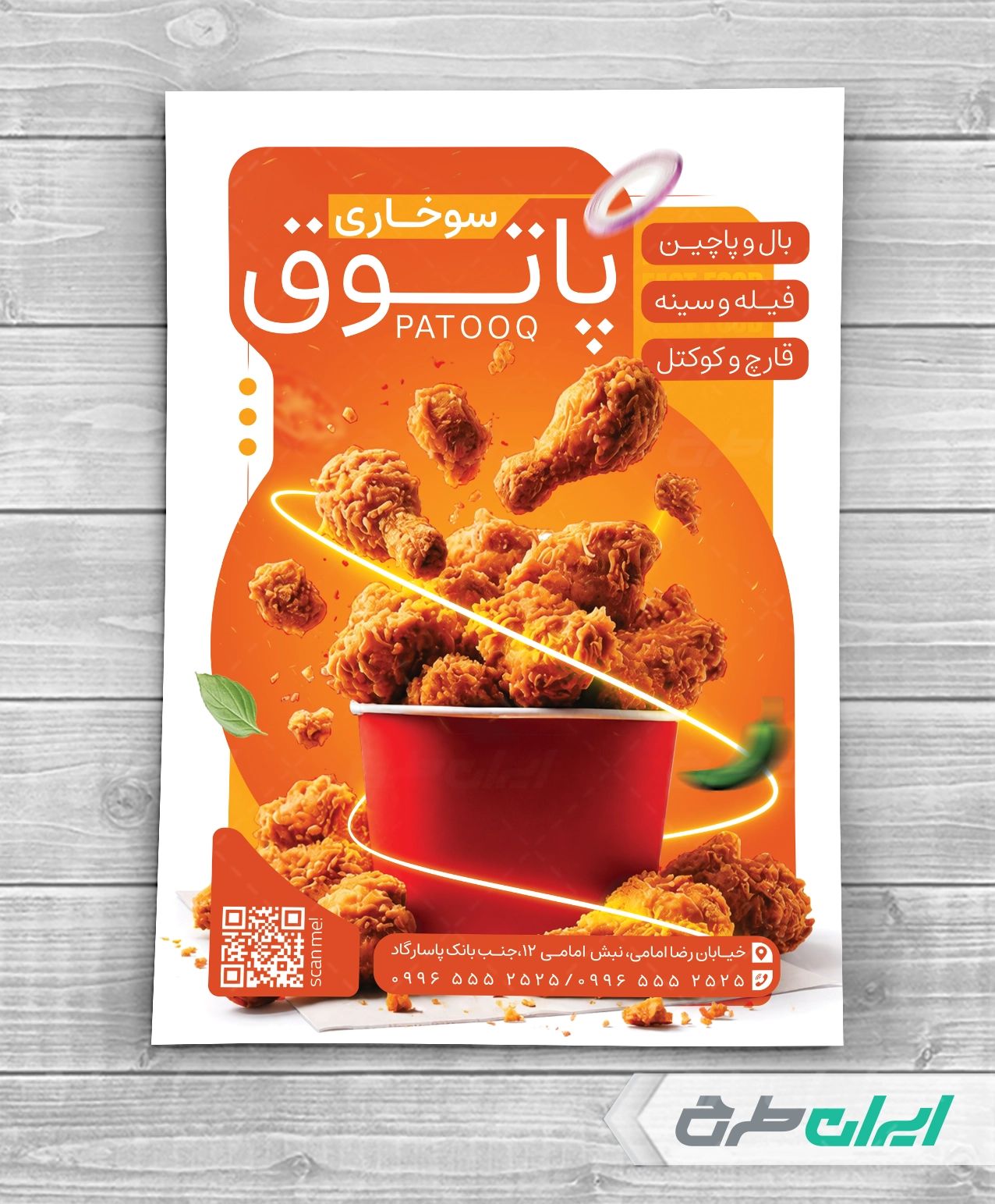 - طراحی تراکت با استفاده از عکس با کیفیت مرغ سوخاری