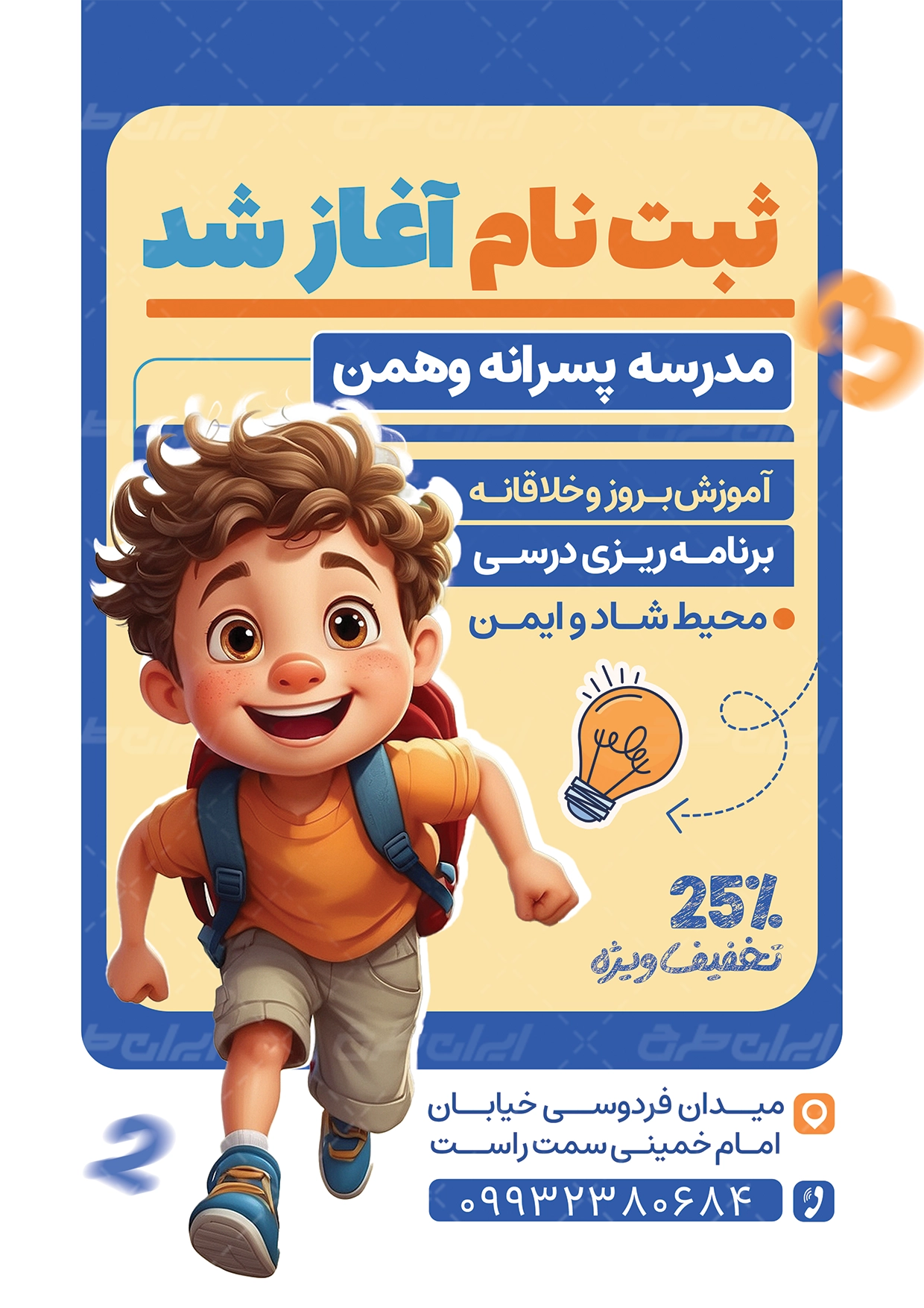 - طراحی شیک و فانتزی تراکت که مناسب شغل ثبت نام دبستان می باشد.