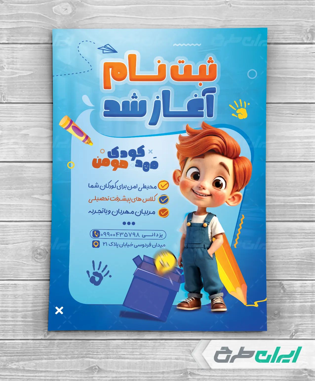 طرح تراکت مهدکودک پیش دبستانی شامل: