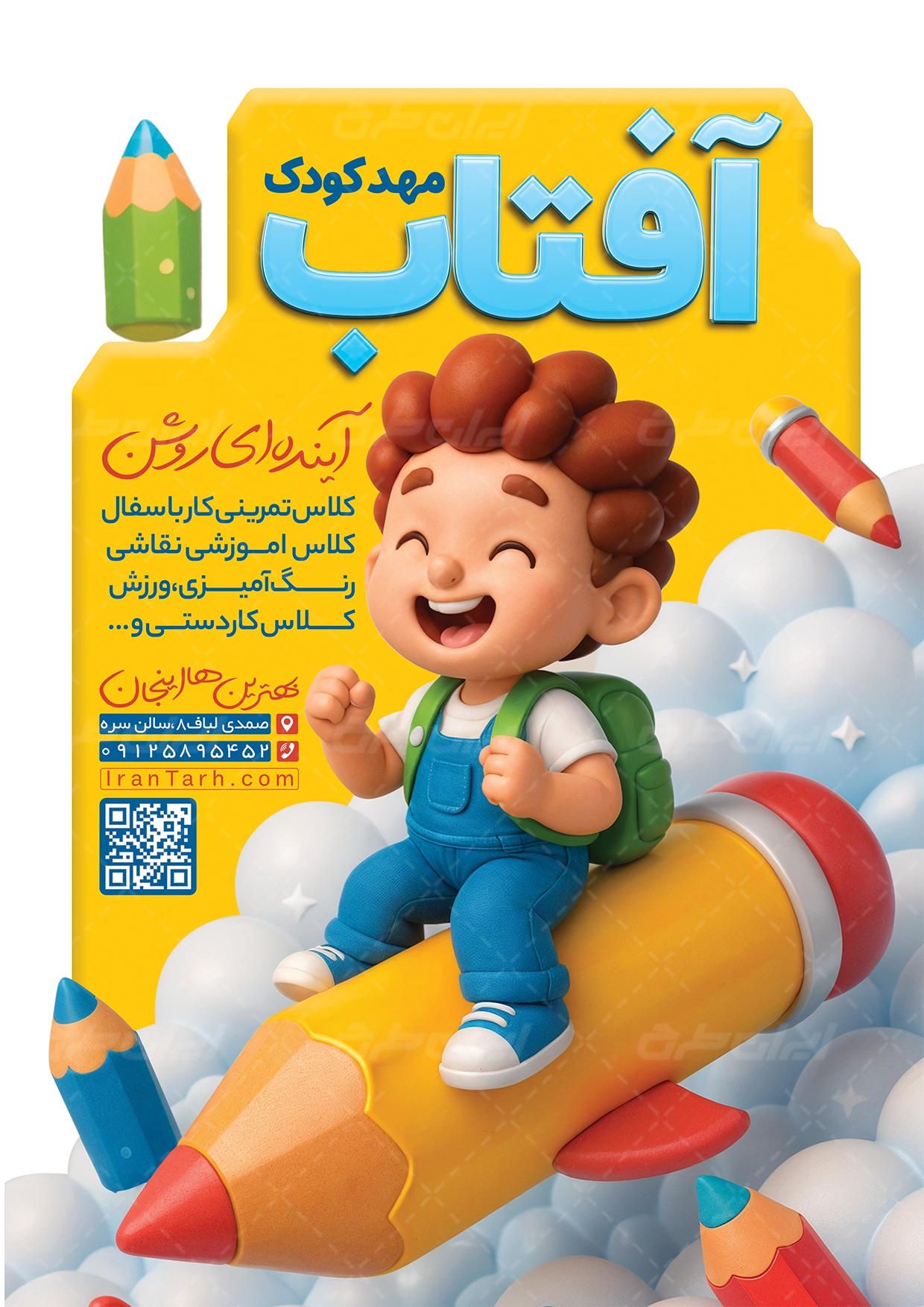 طرح تراکت لایه باز مهدکودک و پیش دبستانی جهت تبلیغات و بازاریابی این دسته از مشاغل توسط تیم ایران طرح طراحی شده است.