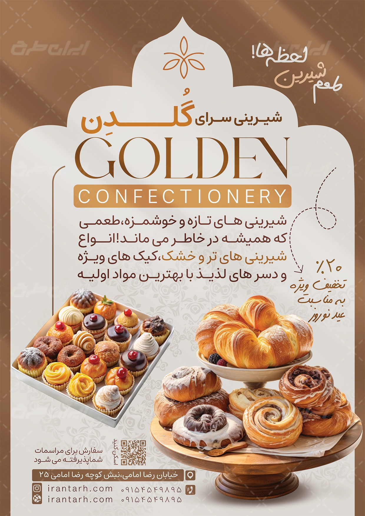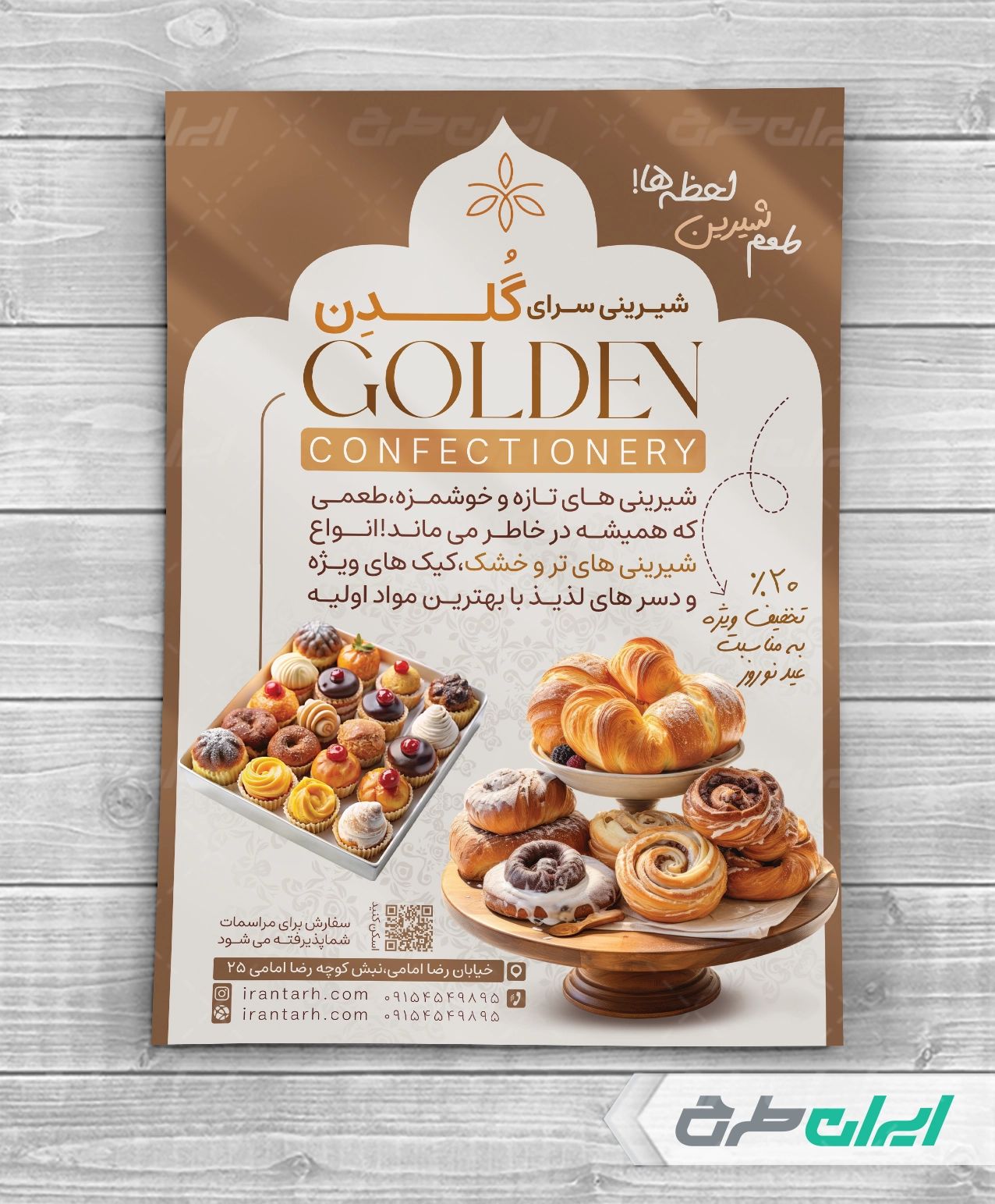 مشخصات فنی طرح تراکت رنگی شیرینی فروشی