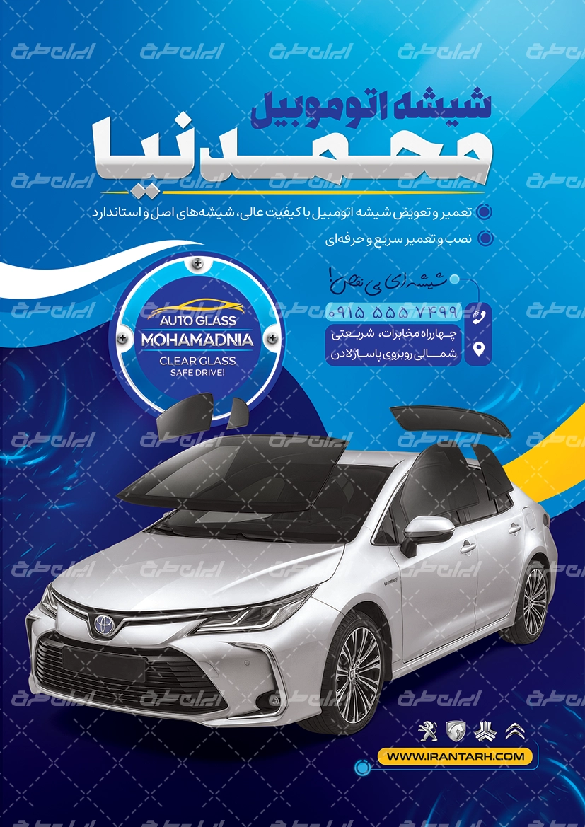 تیم ایران طرح طرح تراکت تعویض شیشه اتومبیل را در نرم افزار فتوشاپ به صورت بسیار شیک و کاربردی طراحی کرده و در دسترس کاربران سایت قرار داده است.