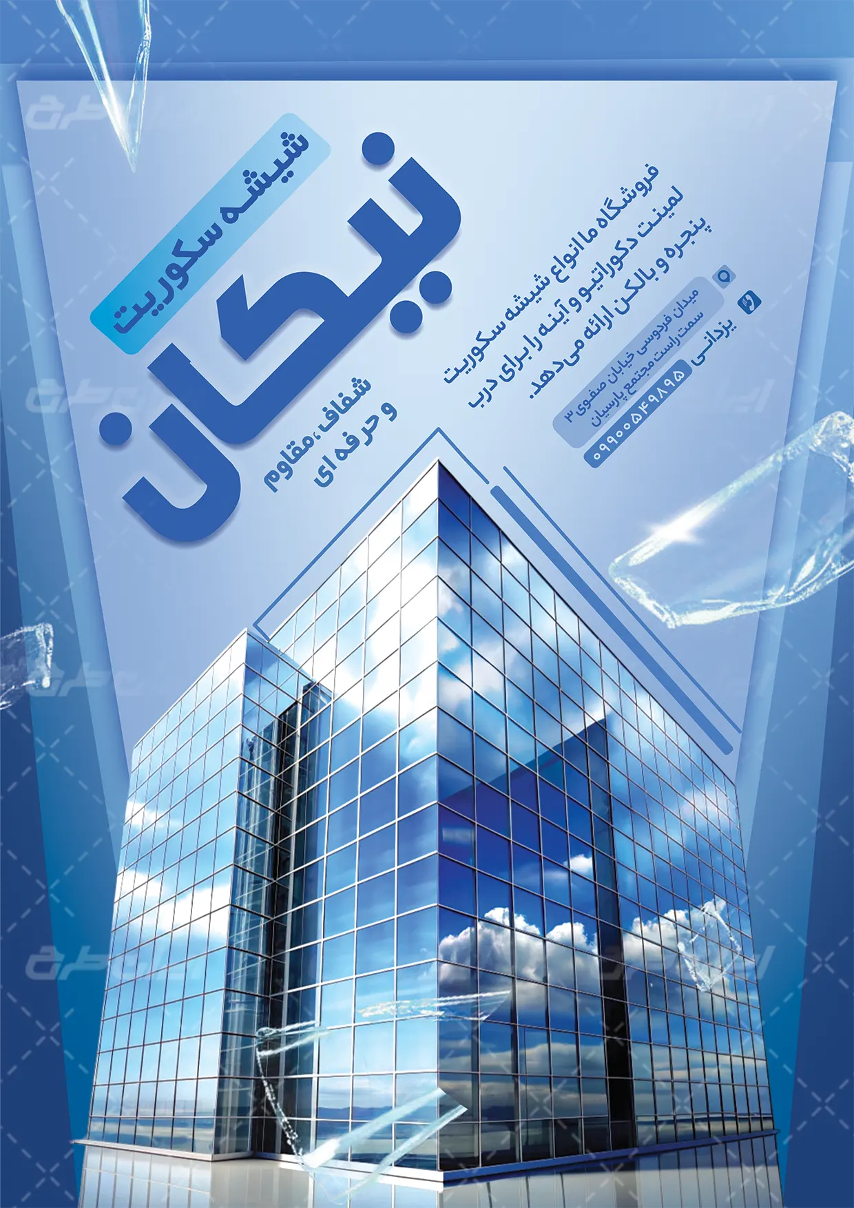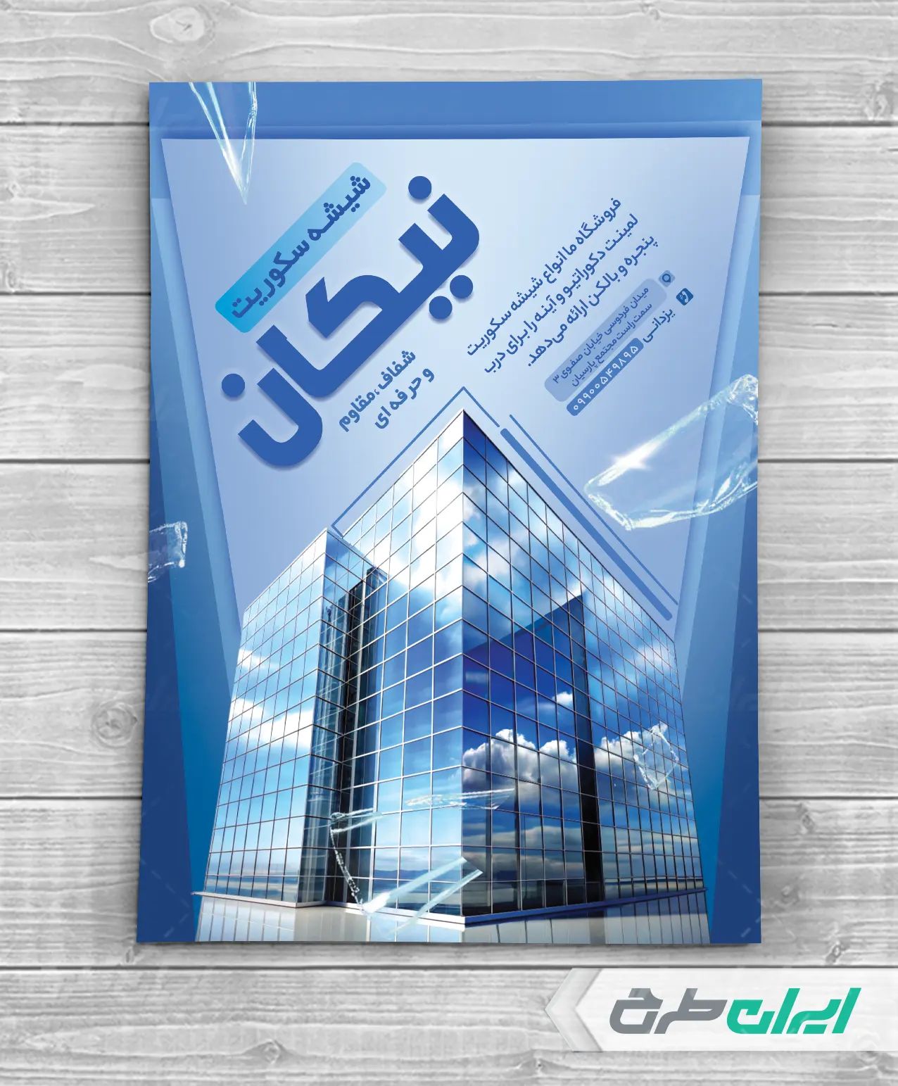- طراحی ساده و کاربردی طرح تراکت شیشه سکوریت