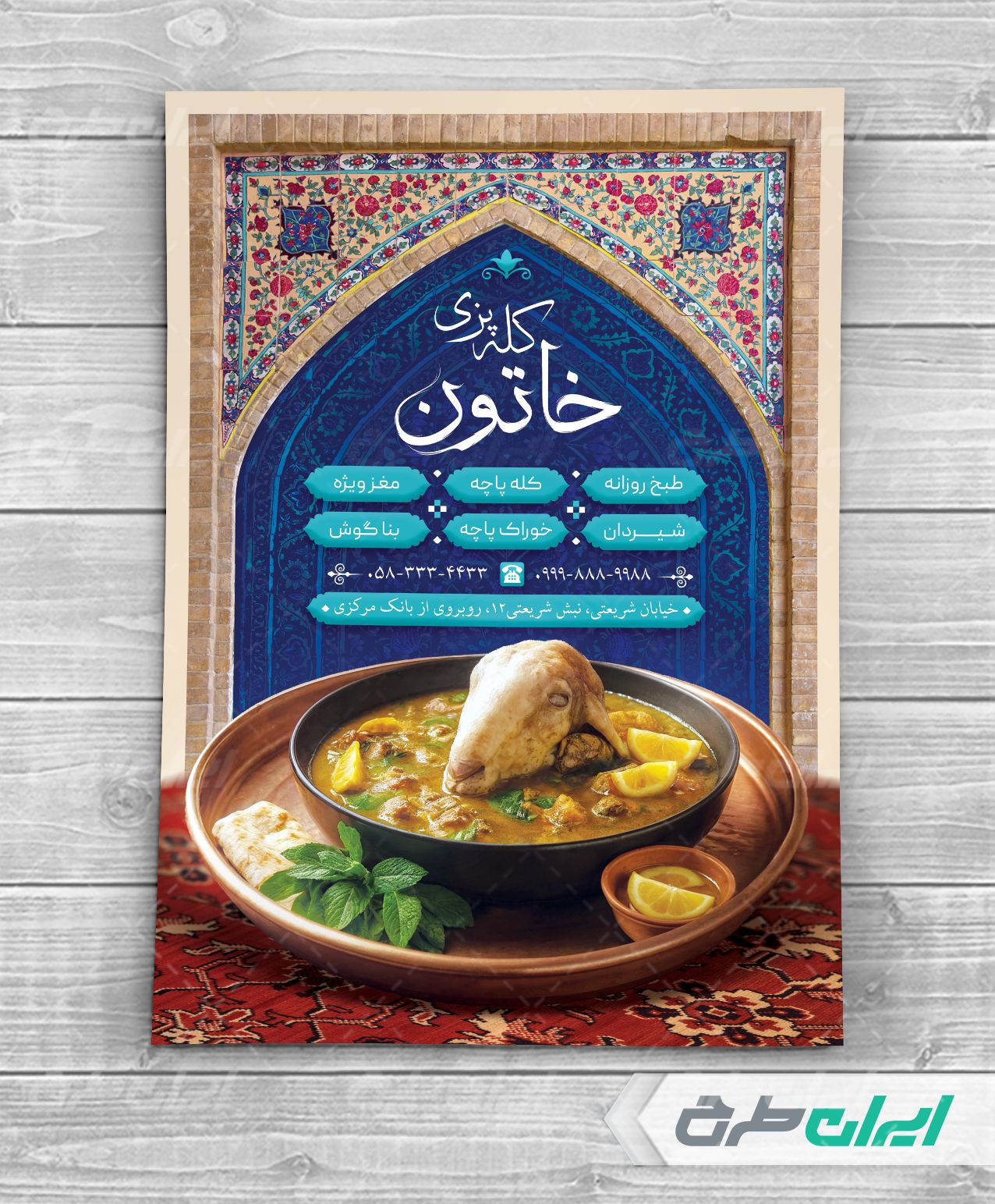 - استفاده از عکس با کیفیت کله و پاچه که مناسب طرح کله پزی می باشد.