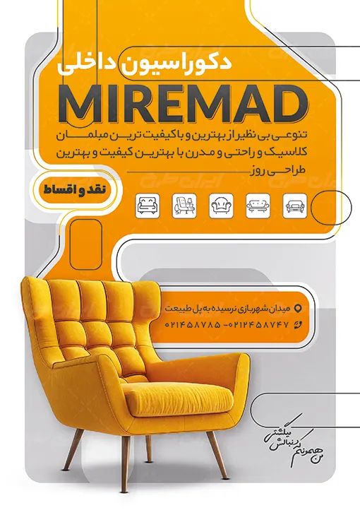 طرح تراکت لایه باز دکوراسیون داخلی، توسط تیم ایران طرح جهت تبلیغات و بازاریابی این مشاغل طراحی و در دسترس کاربران سایت قرار گرفته است.