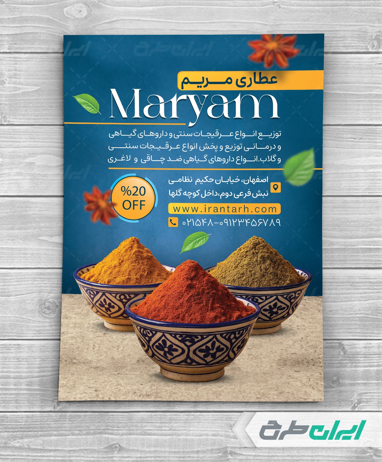 - استفاده مناسب از عکس با کیفیت دارو گیاهی و ادویه در طرح تراکت عطاری