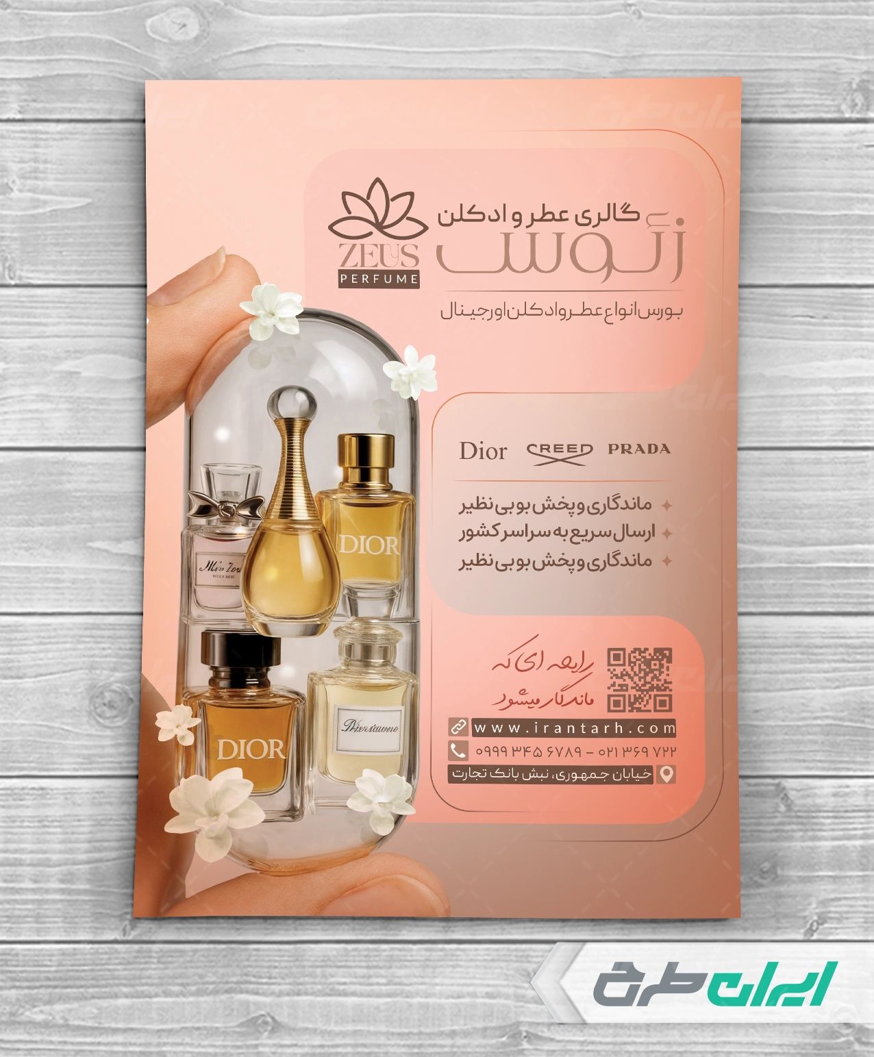 طرح تراکت فروشگاه عطر و ادکلن جهت تبلیغات و بازاریابی این فروشگاه ها توسط تیم ایران طرح طراحی شده است.