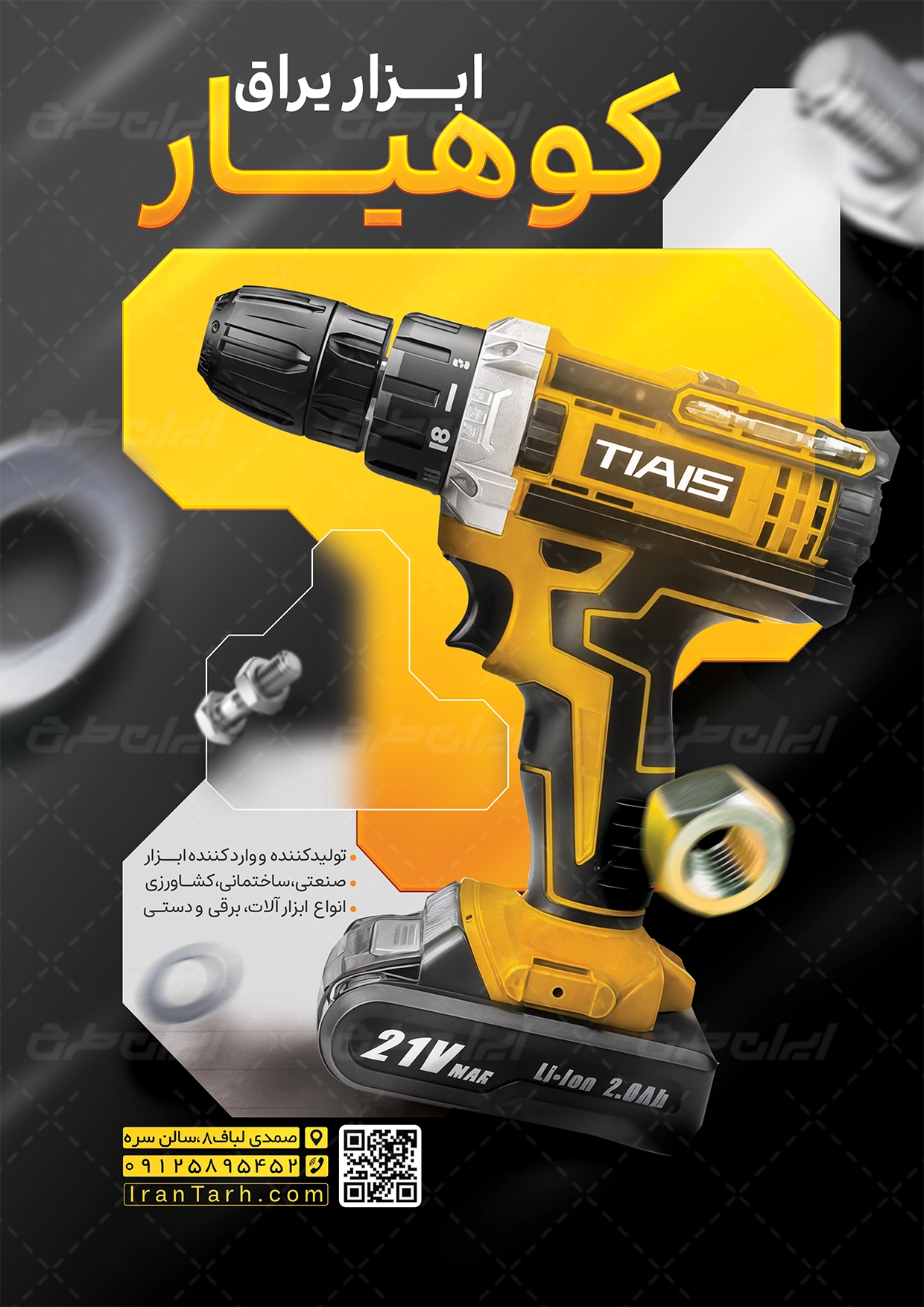 - استفاده از عکس باکیفیت ابزار یراق که مناسب با طرح تراکت لایه باز ابزار فروشی