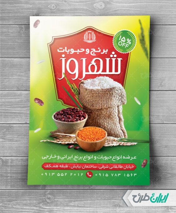 عناصر طرح تراکت لایه باز فروشگاه برنج و حبوبات