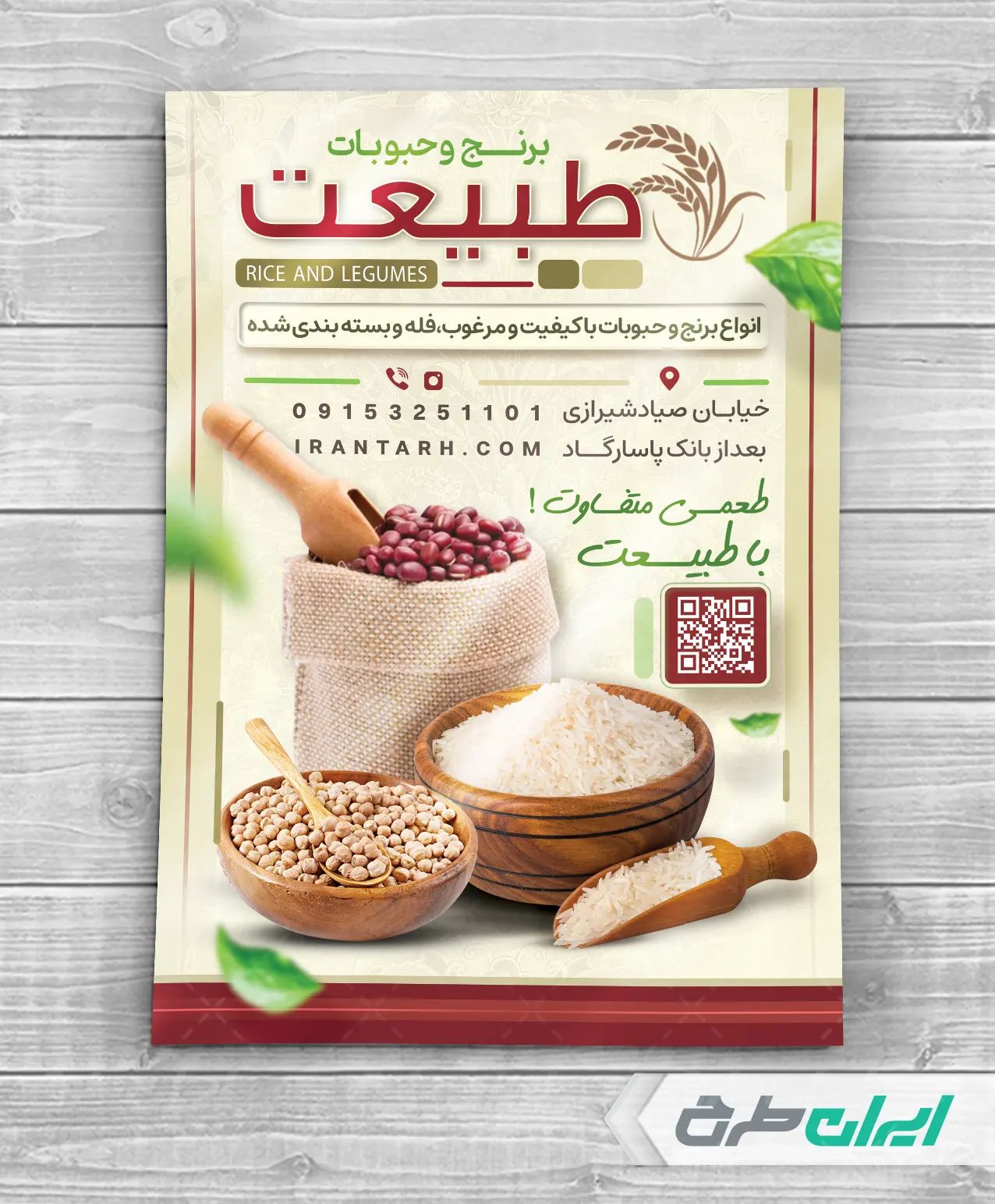 طرح تراکت فروشگاه برنج و حبوبات شامل: