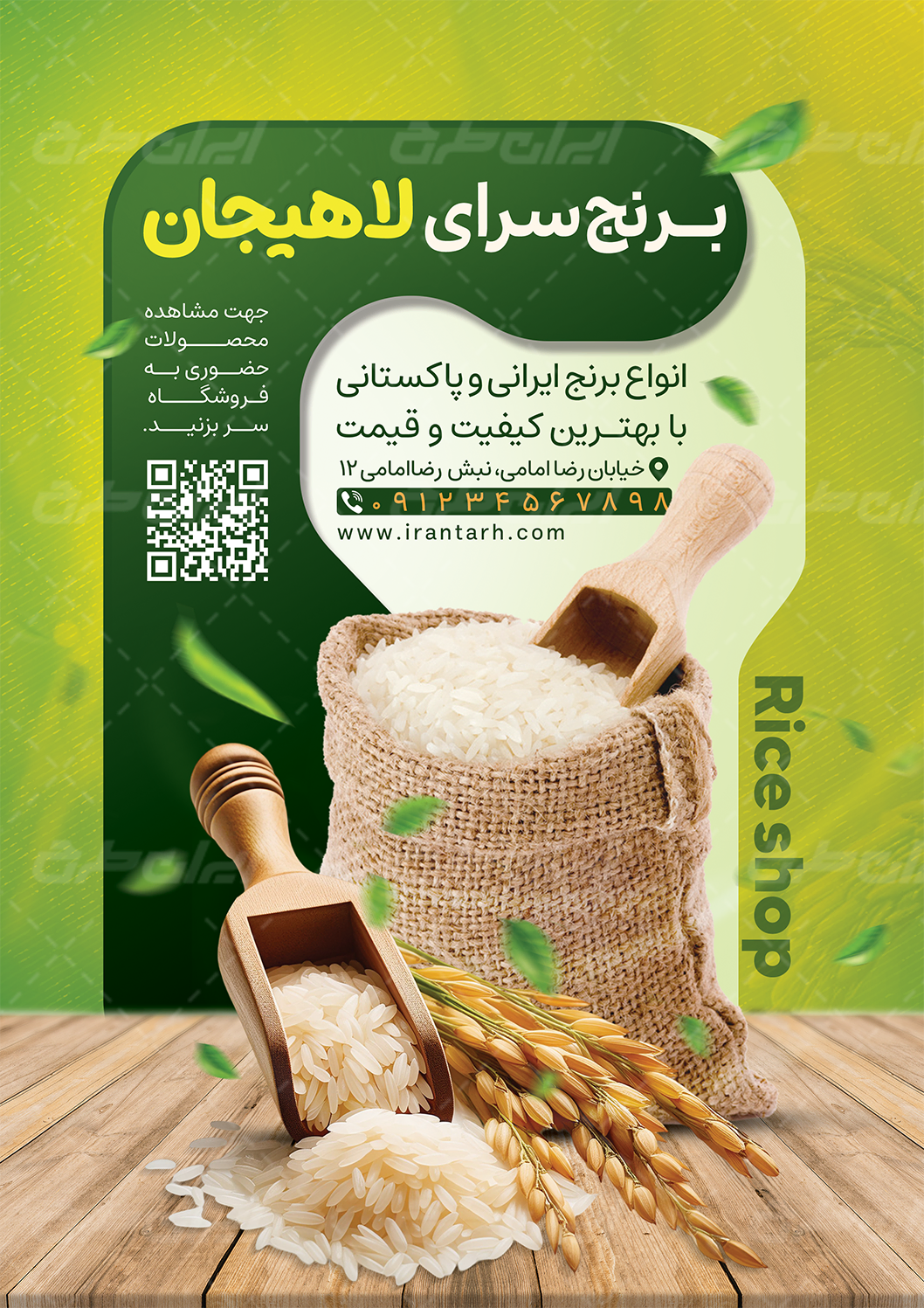 - طراحی ساده و کاربردی تراکت لایه باز فروشگاه برنج