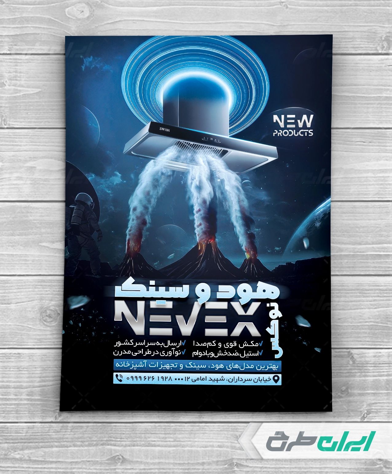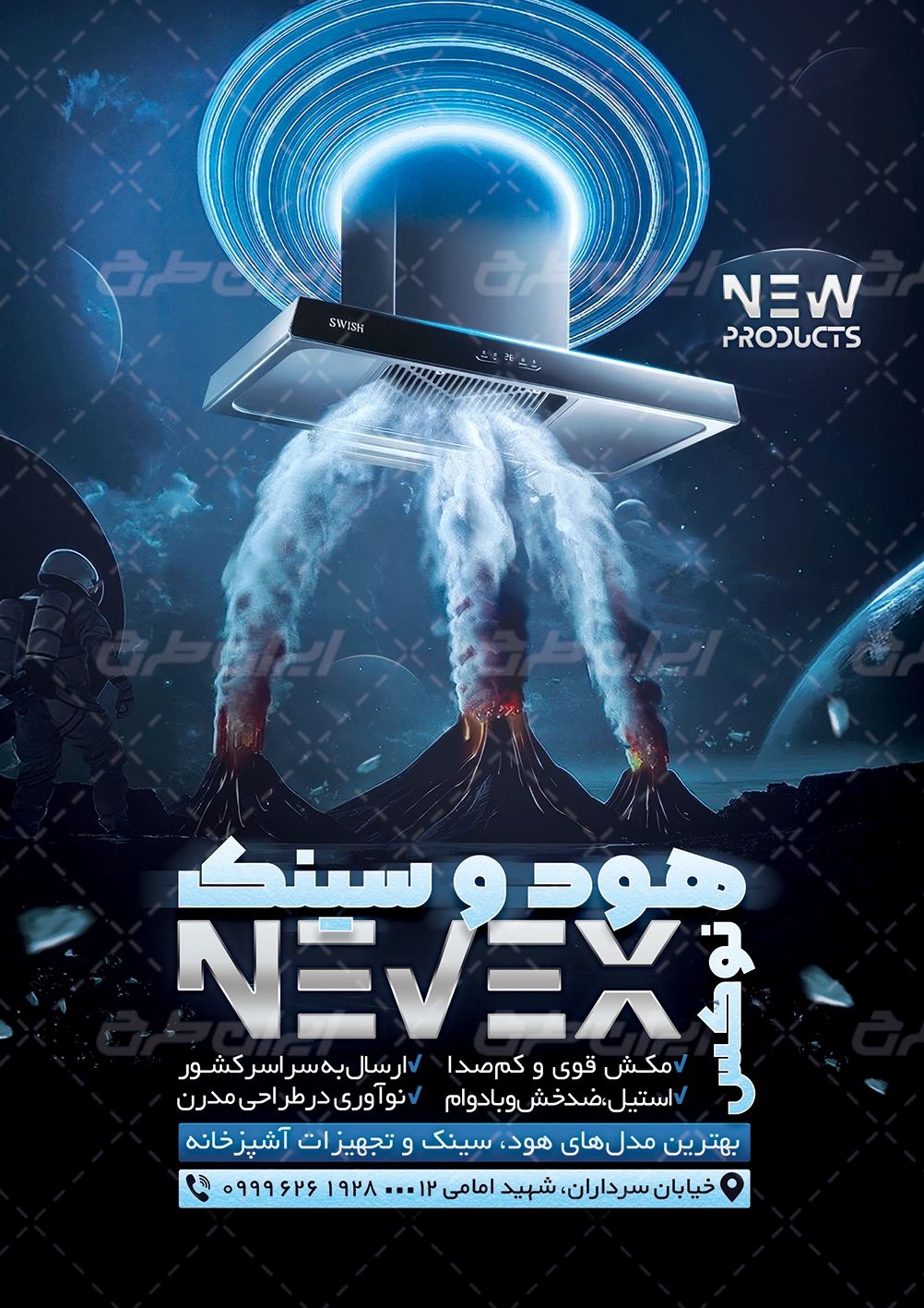 - استفاده از عکس با کیفیت هود با طرح تراکت لایه باز فروشگاه هود وسینک می باشد