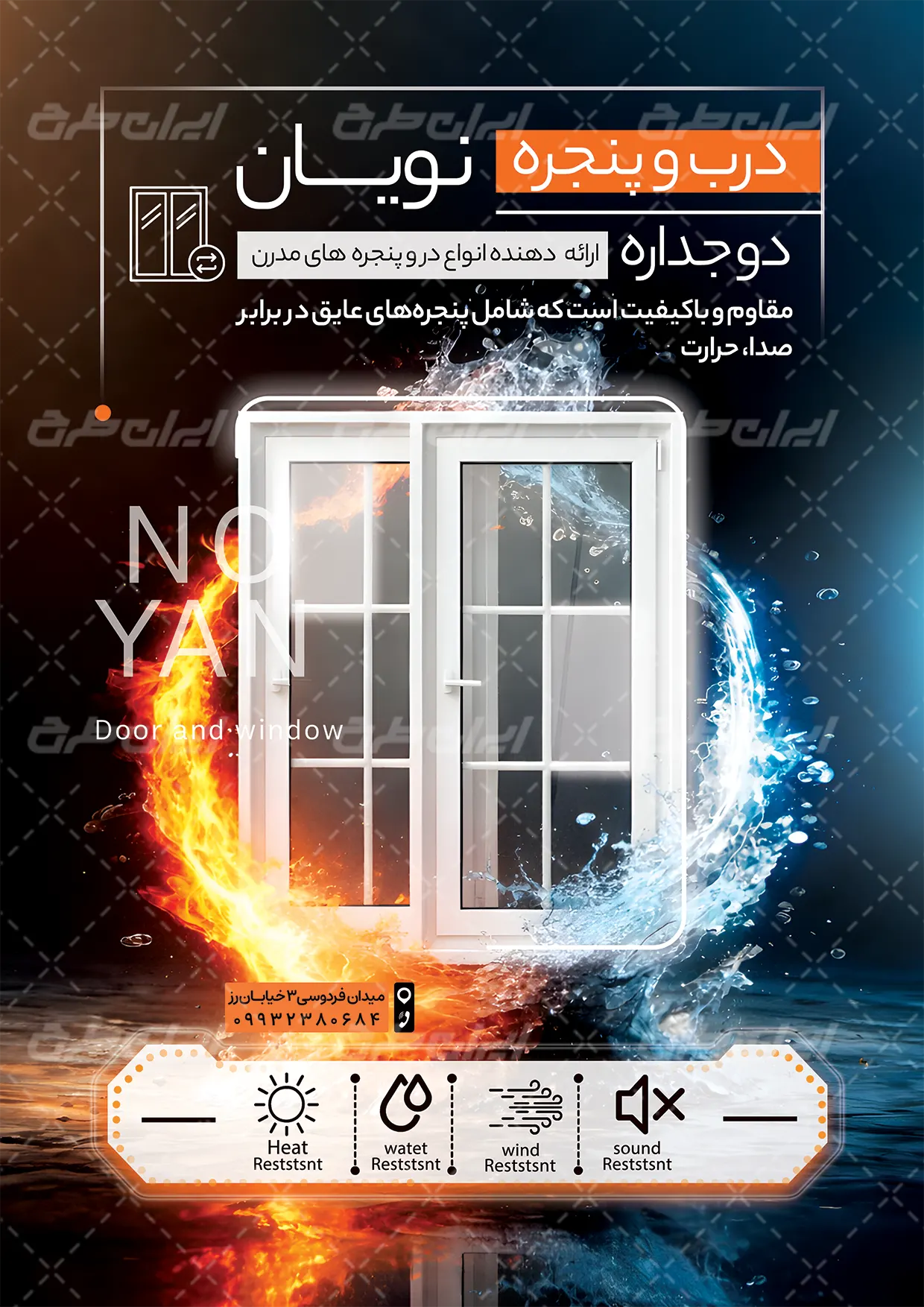 عناصر طرح تراکت فروشگاه درب و پنجره دو جداره