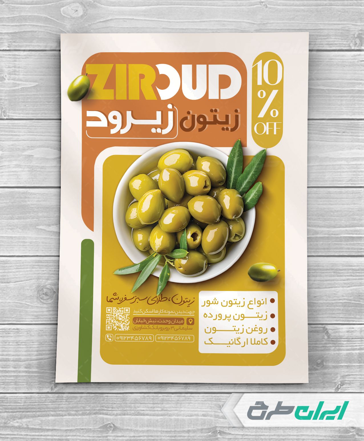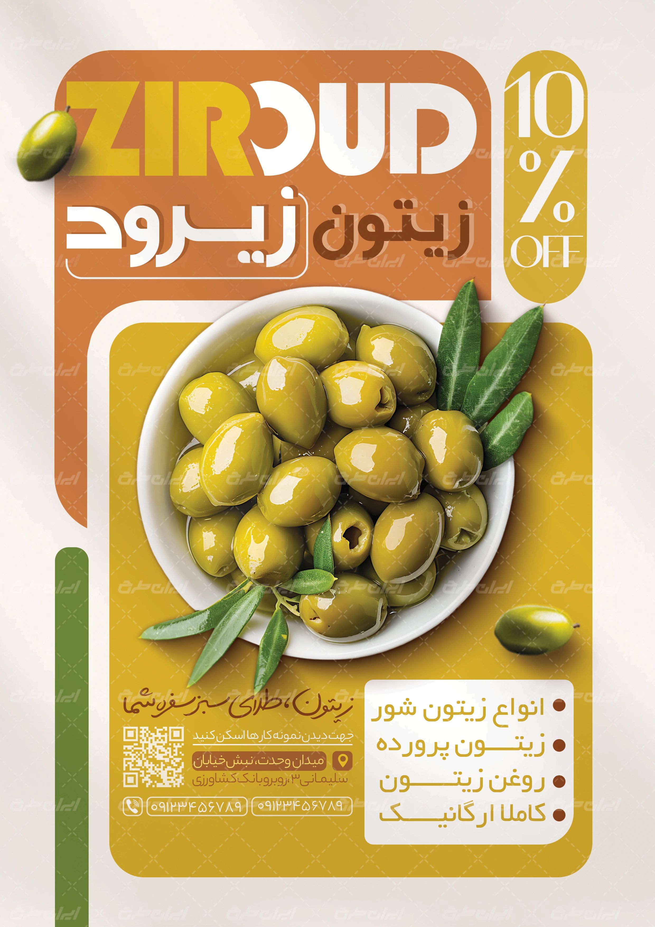 - طراحی ساده و کاربردی تراکت زیتون فروشی