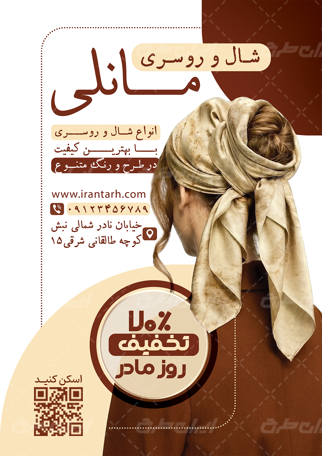 طرح تراکت فروشگاه شال و روسری شامل: