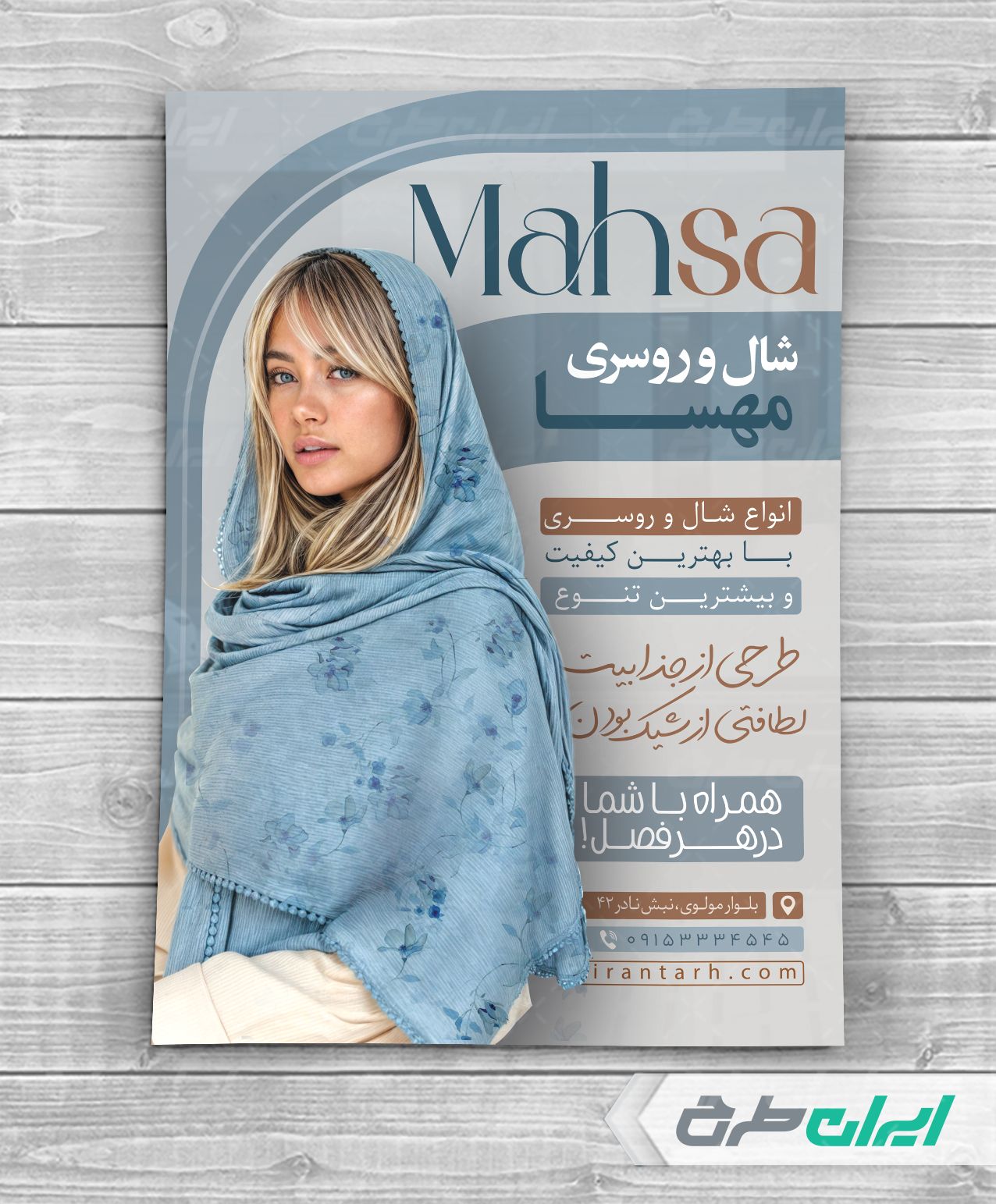 ایران طرح طرح تراکت فروشگاه شال و روسری را جهت تبلیغات و بازاریابی این فروشگاه ها، طراحی و در دسترس کاربران سایت قرار داده است.