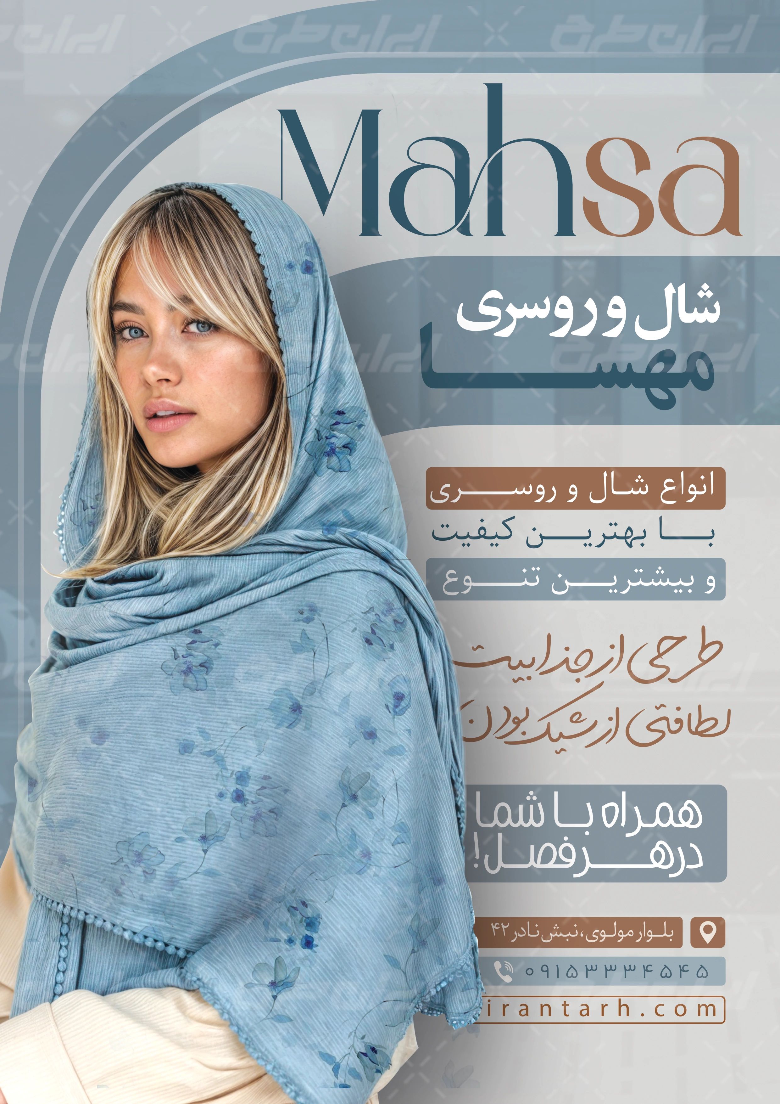 طرح تراکت فروشگاه شال و روسری شامل: