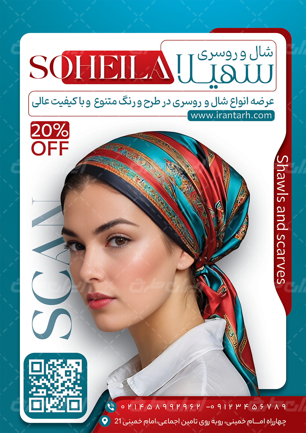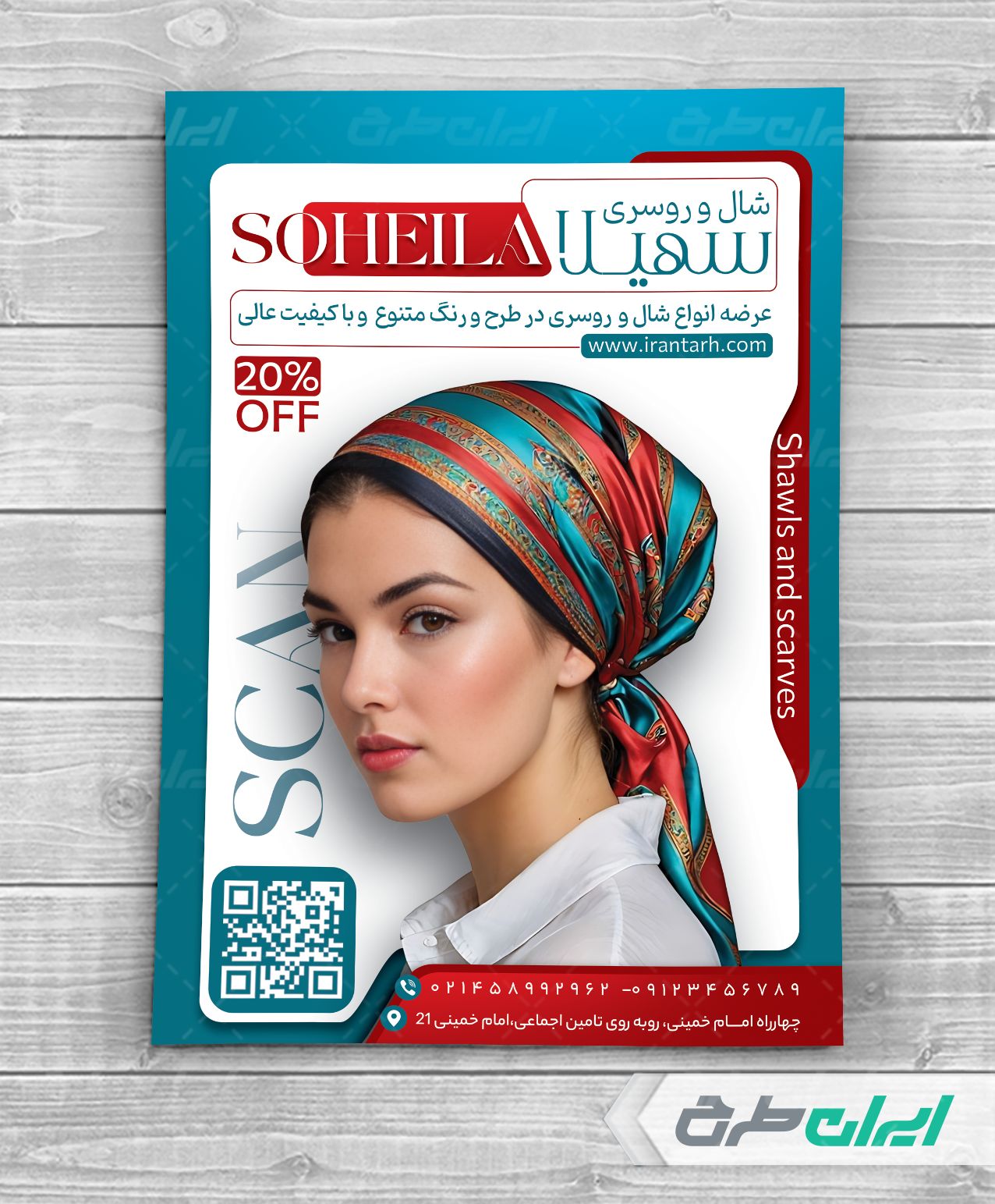 ایران طرح طرح تراکت فروشگاه شال و روسری را جهت تبلیغات و بازاریابی این فروشگاه ها، طراحی و در دسترس کاربران سایت قرار داده است.