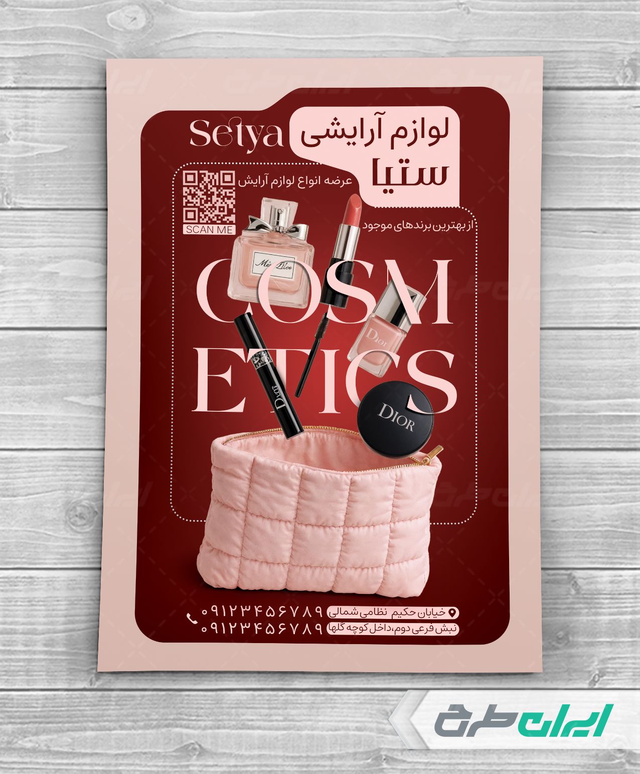 طرح تراکت لایه باز لوازم آرایشی، جهت بازاریابی و تبلیغات این فروشگاه ها توسط ایران طرح طراحی و در اختیار کاربران سایت قرار گرفته است.