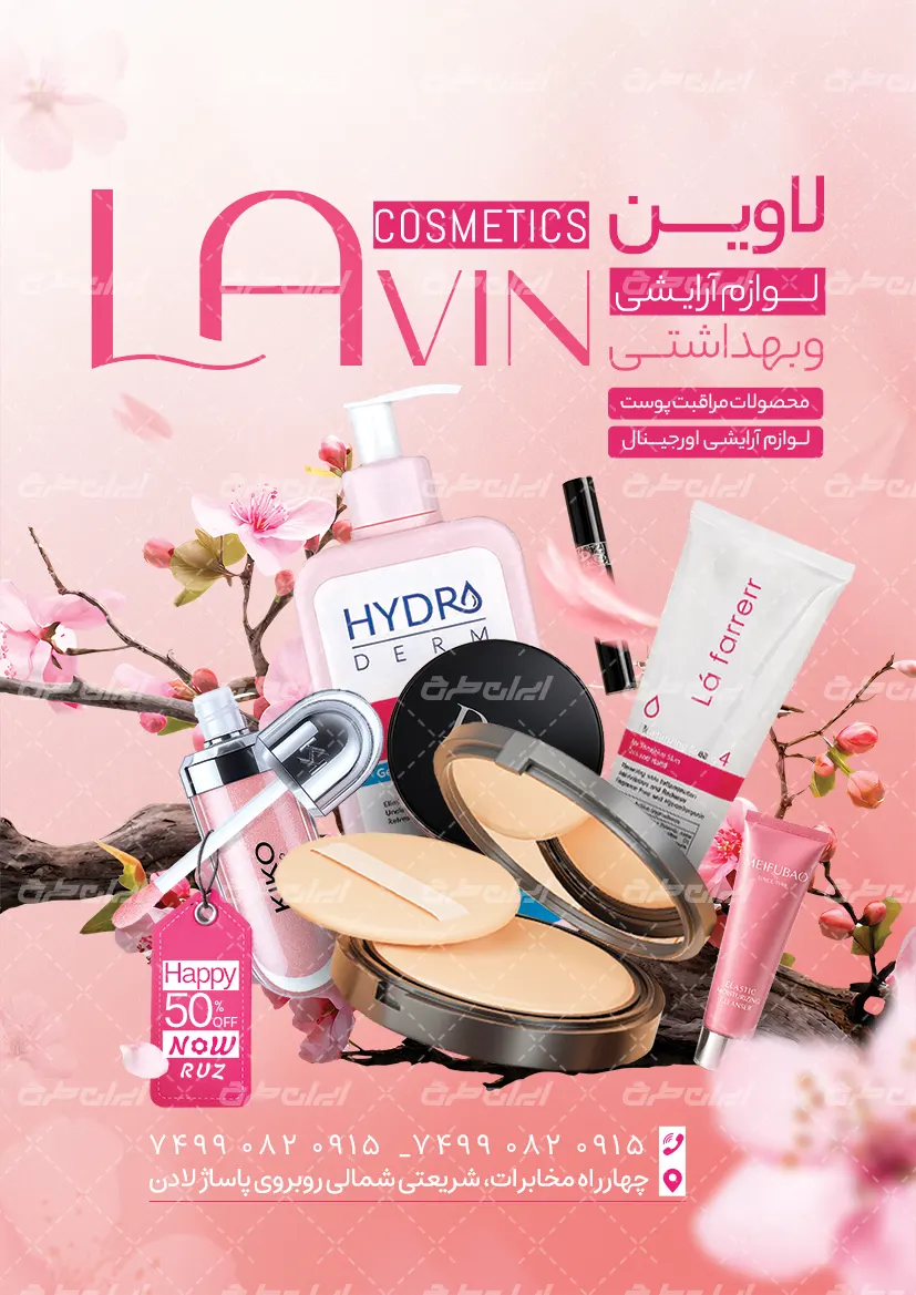 طرح تراکت لایه باز لوازم آرایشی، جهت بازاریابی و تبلیغات این فروشگاه ها توسط ایران طرح طراحی و در اختیار کاربران سایت قرار گرفته است.