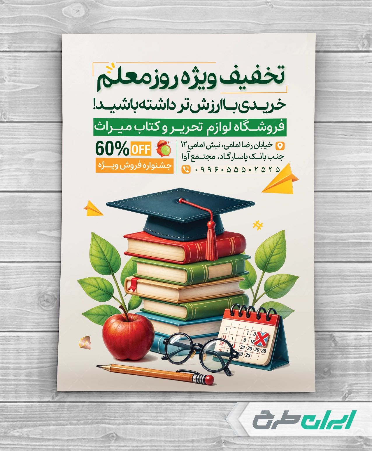 طرح تراکت لایه باز فروشگاه نوشت افزار، جهت بازاریابی و تبلیغات این دسته از فروشگاه ها توسط تیم طراحان ایران طرح طراحی و در دسترس کاربران سایت قرار گرفته است.