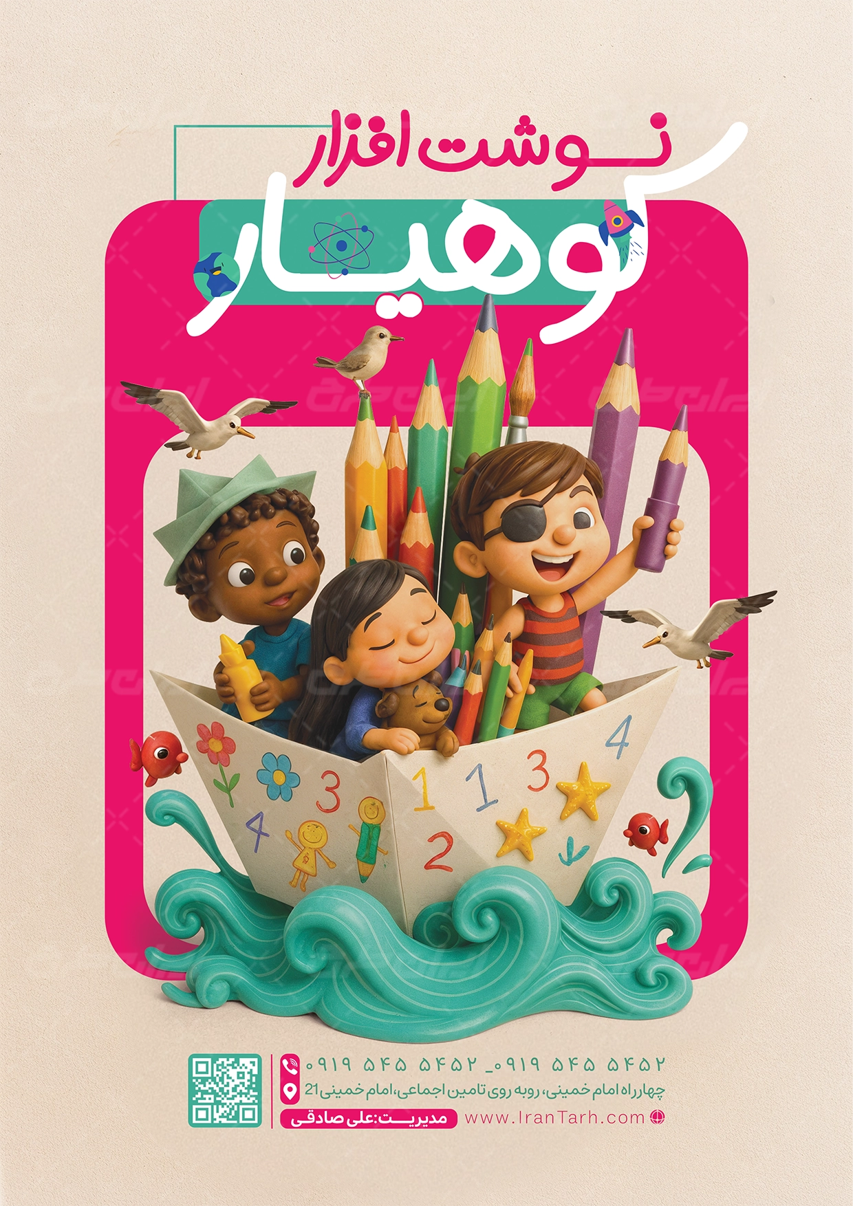 طرح تراکت لایه باز فروشگاه نوشت افزار، جهت بازاریابی و تبلیغات این دسته از فروشگاه ها توسط تیم طراحان ایران طرح طراحی و در دسترس کاربران سایت قرار گرفته است.