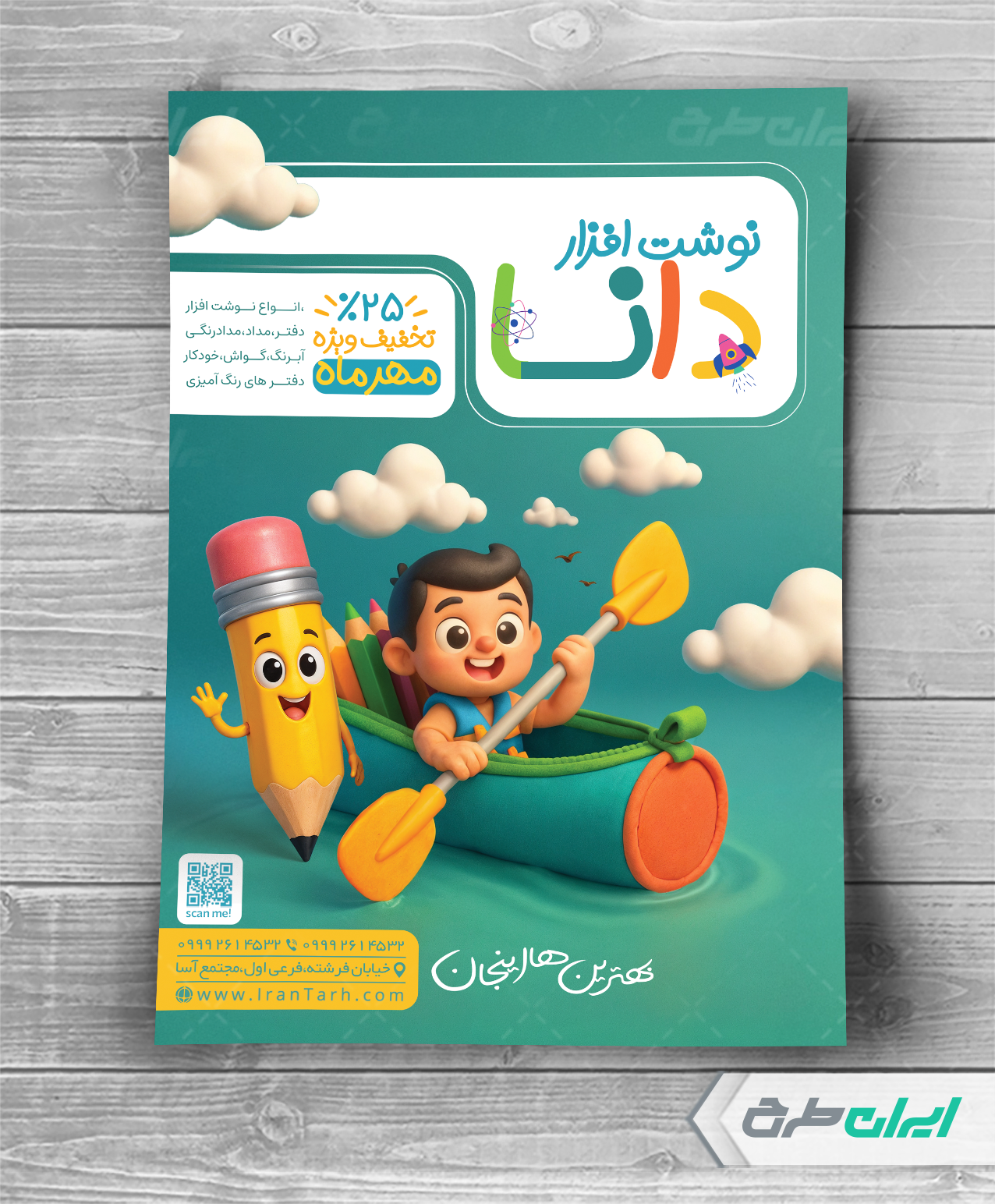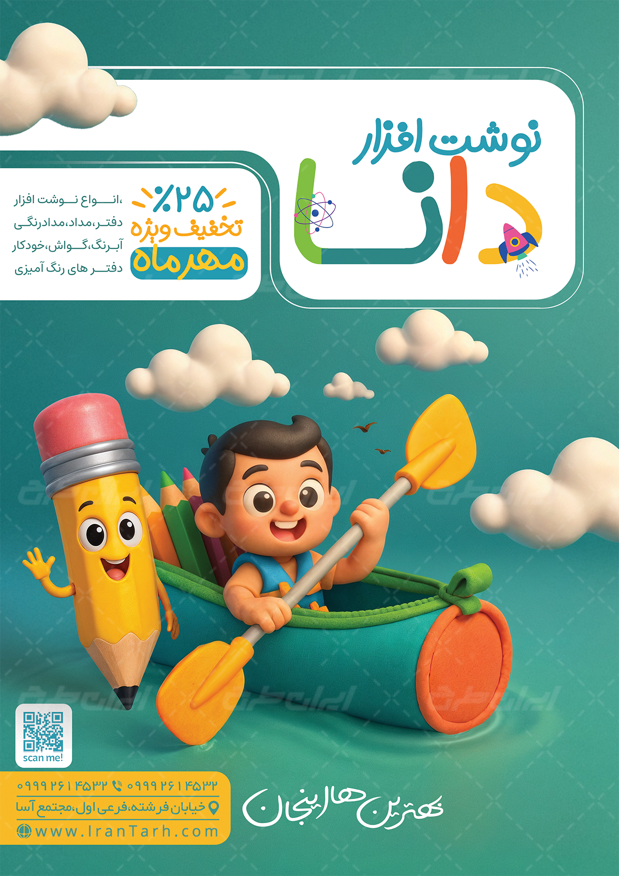 طرح تراکت لایه باز فروشگاه نوشت افزار، جهت بازاریابی و تبلیغات این دسته از فروشگاه ها توسط تیم طراحان ایران طرح طراحی و در دسترس کاربران سایت قرار گرفته است.