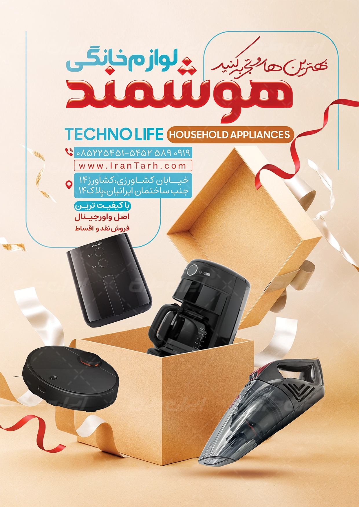 عکس با کیفیت لوازم خانگی برقی، وکتور مرتبط با طرح لوازم خانگی، عکس با کیفیت، لیبل و شیپ های بسیار زیبا می باشد که توسط طراحان ایران طرح به صورت افقی در نرم افزار فتوشاپ طراحی شده است.