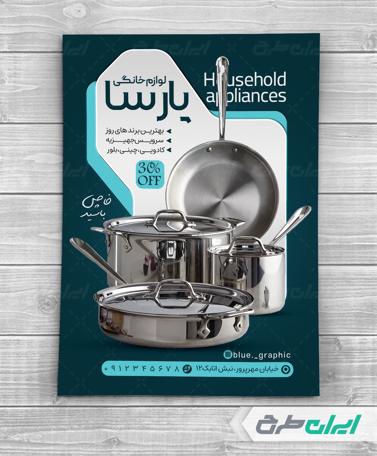 - طراحی شیک و کاربردی تراکت فروشگاه لوازم خانگی