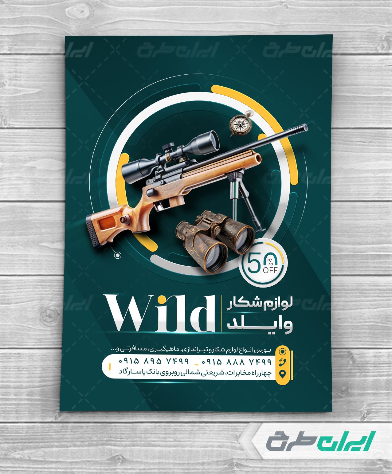 طرح تراکت فروشگاه لوازم شکار , تراکت فروشگاه لوازم شکار , فروشگاه لوازم شکار , طرح لایه باز تراکت فروشگاه لوازم شکار , طرح تراکت , تراکت ,