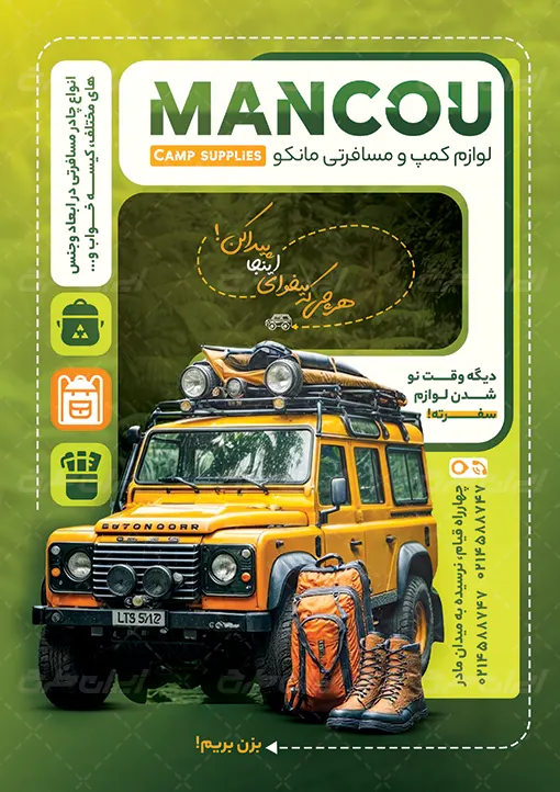 - استفاده از وکتور مناسب طرح تراکت لوازم کوه نوردی و کمپینگ می باشد.