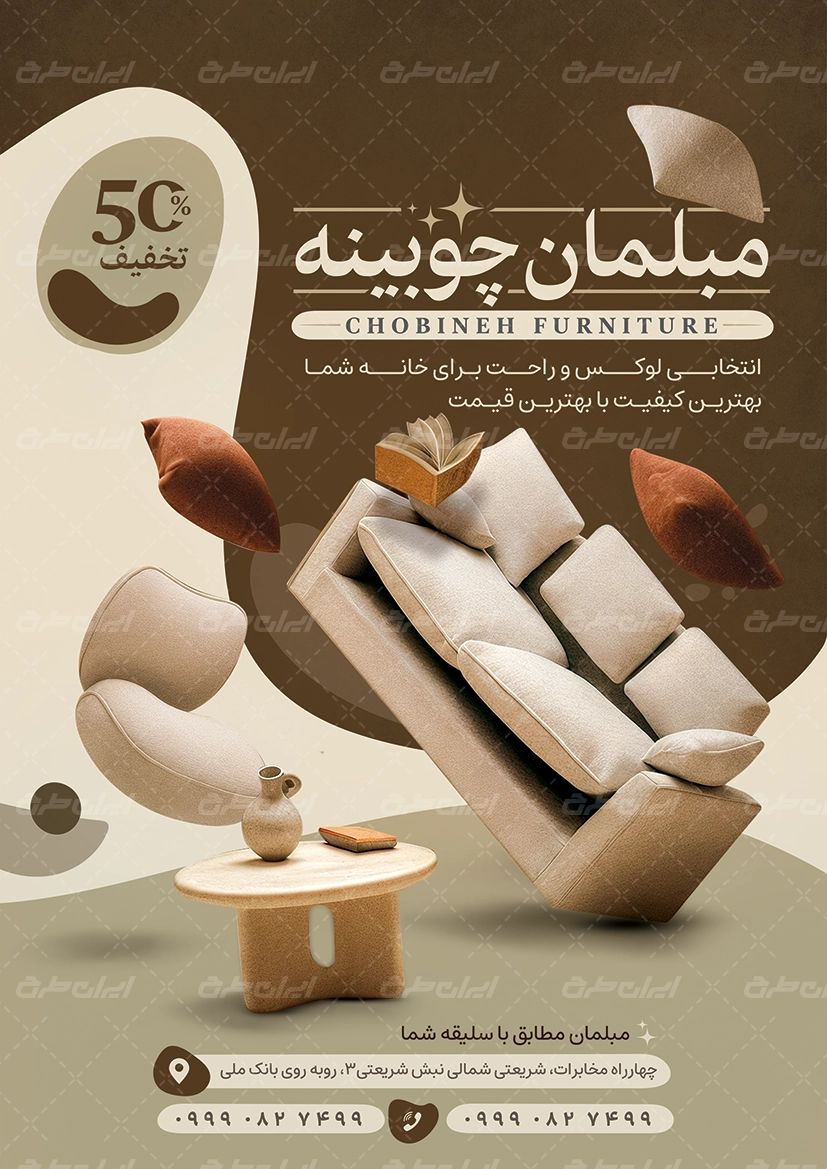 طرح تراکت لایه باز مبلمان، جهت بازاریابی و تبلیغات این فروشگاه ها توسط ایران طرح طراحی و در اختیار کاربران سایت قرار گرفته است.