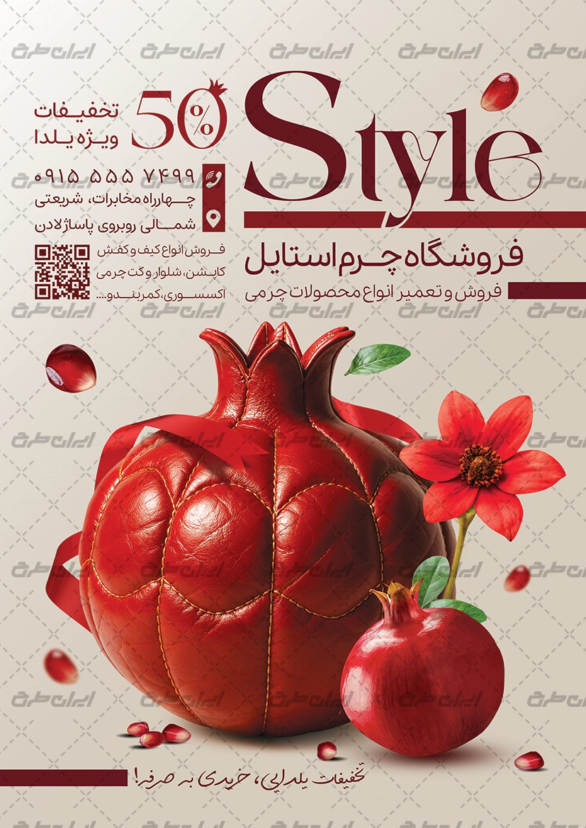طرح تراکت فروشگاه محصولات چرمی تخفیف یلدایی