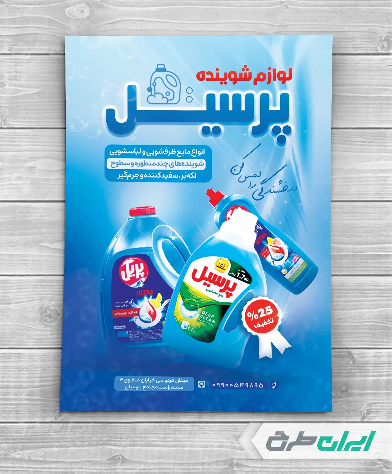 ایران طرح طرح تراکت فروشگاه مواد شوینده را جهت تبلیغات و بازاریابی این فروشگاه ها طراحی و در دسترس کاربران سایت قرار داده است.