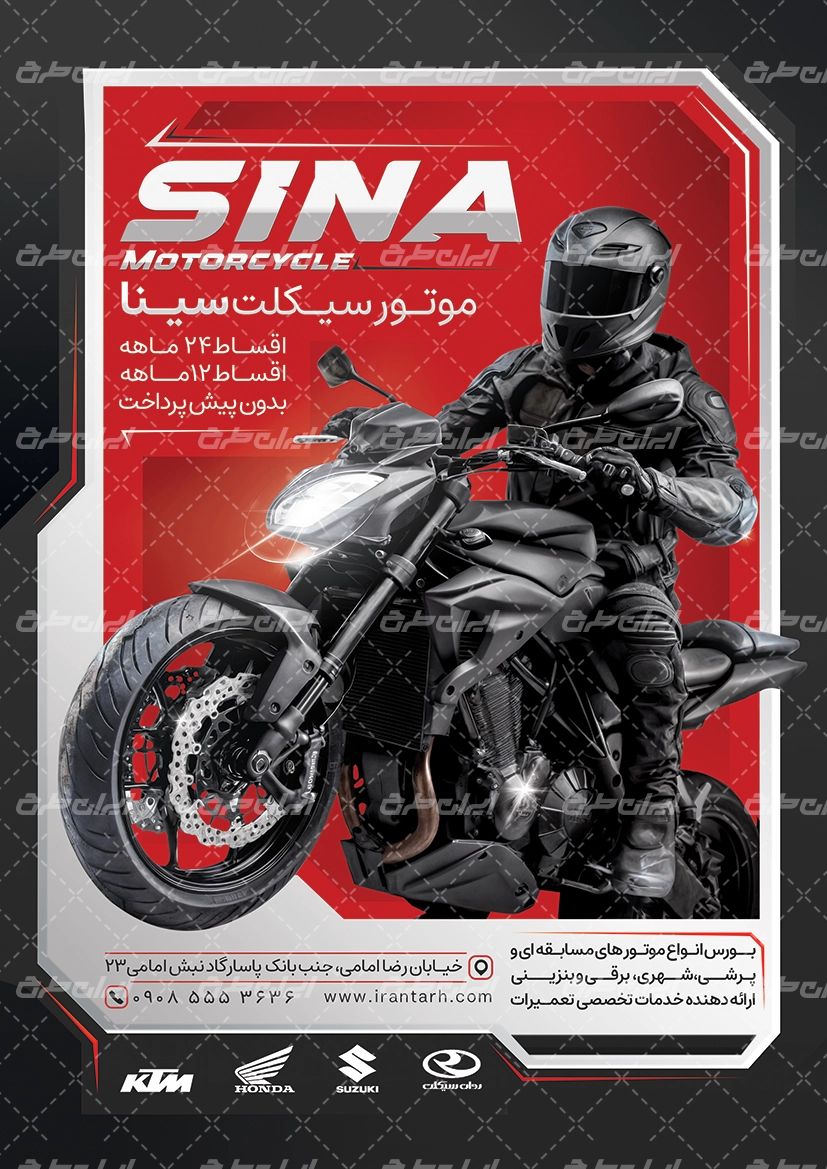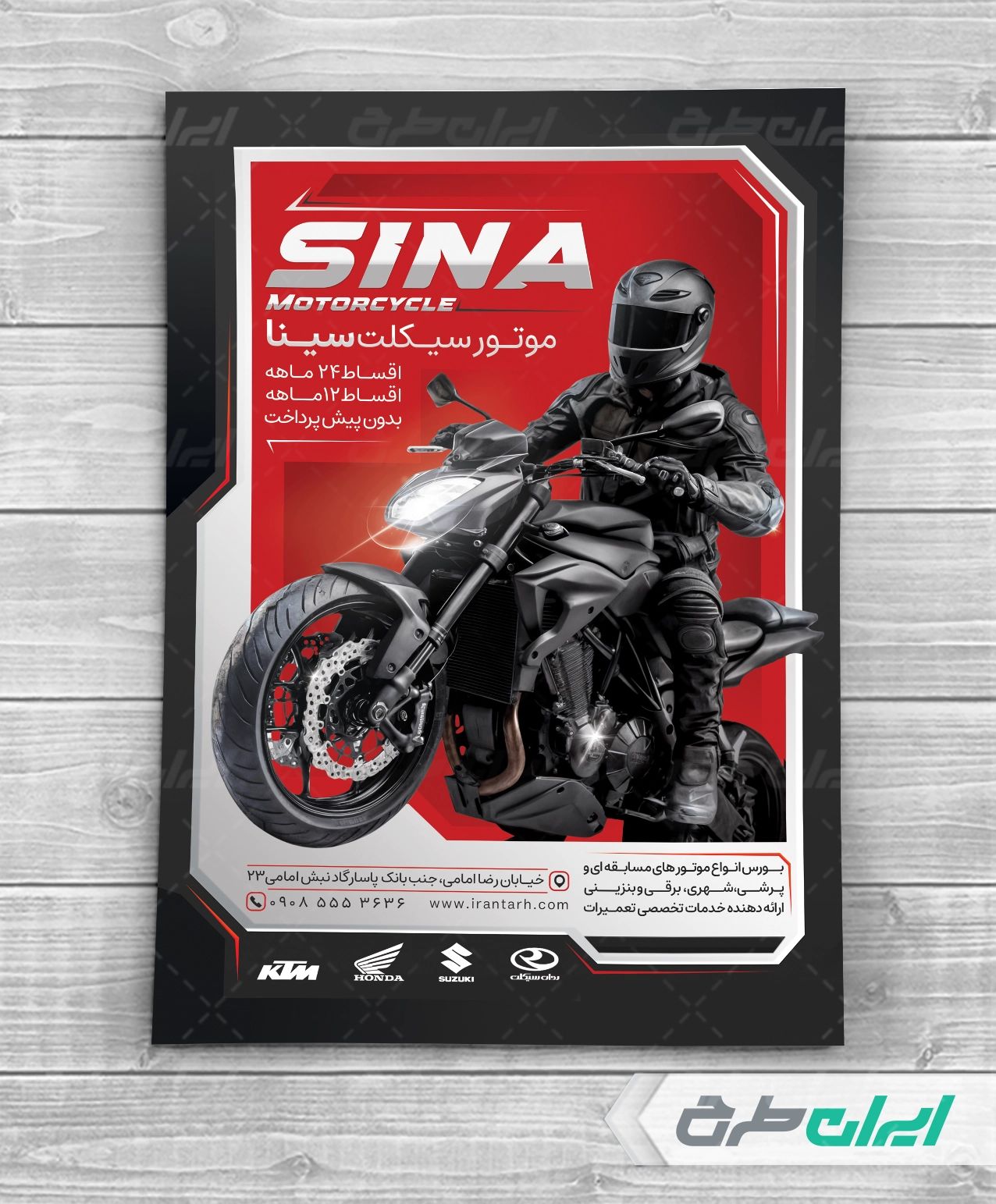 طرح لایه باز تراکت فروشگاه موتور سیکلت، توسط تیم ایران طرح جهت تبلیغات و بازاریابی این مشاغل طراحی و در دسترس کاربران سایت قرار گرفته است.
