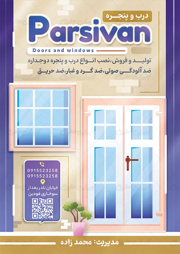 عناصر طرح تراکت فروشگاه درب و پنجره دو جداره
