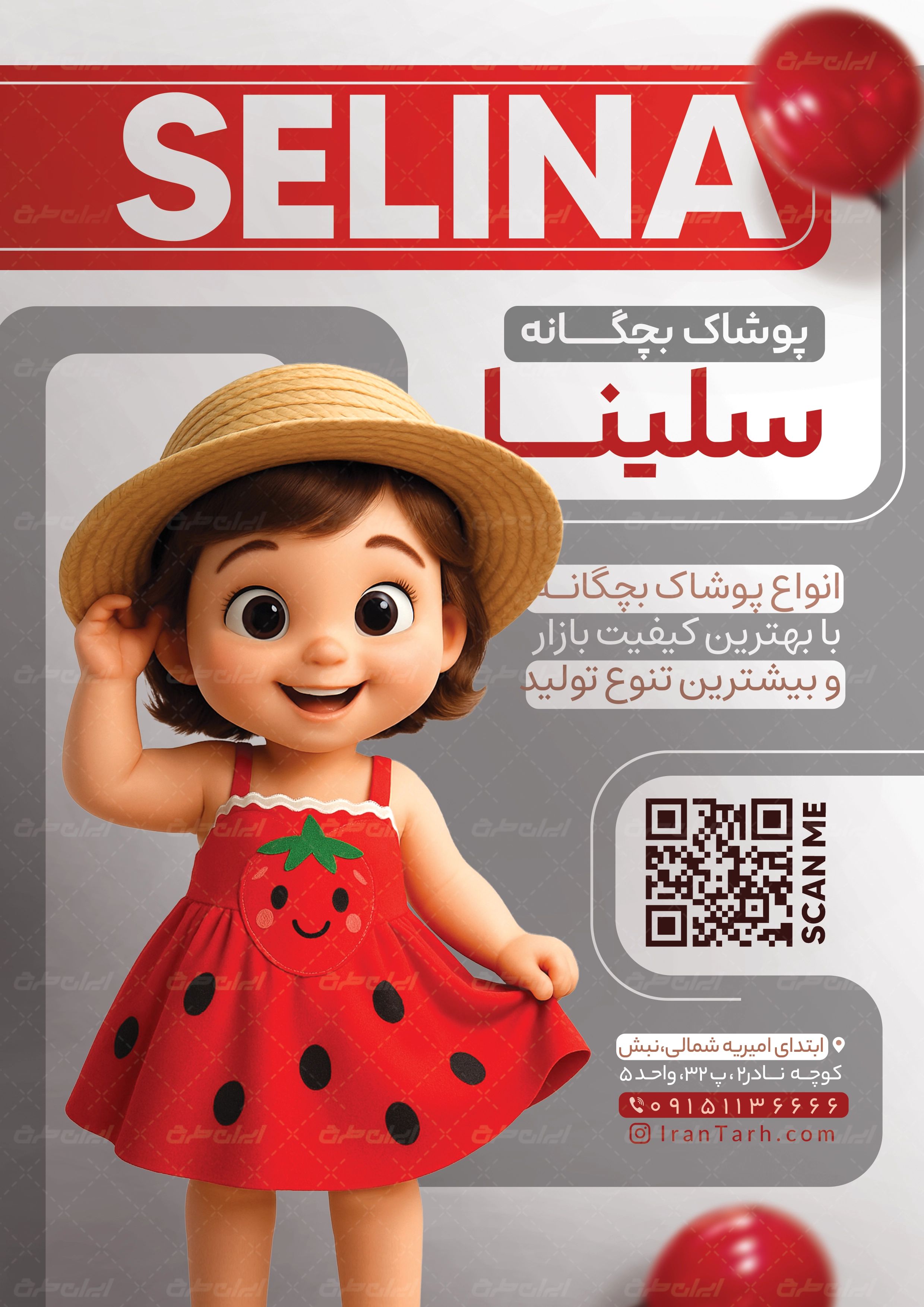 طرح تراکت گالری پوشاک کودک، جهت بازاریابی و تبلیغات این دسته از فروشگاه ها توسط تیم طراحان ایران طرح طراحی و در دسترس کاربران سایت قرار گرفته است.