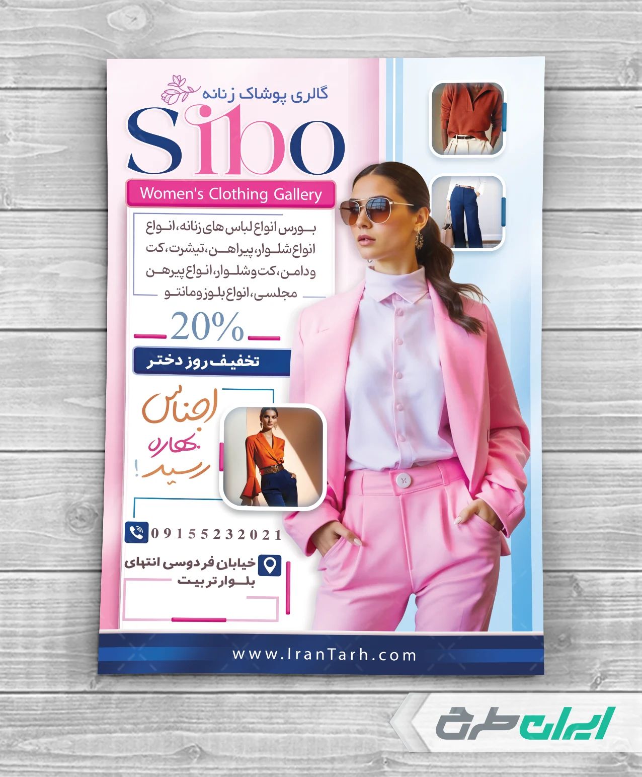 مشخصات فنی طرح تراکت گالری پوشاک زنانه